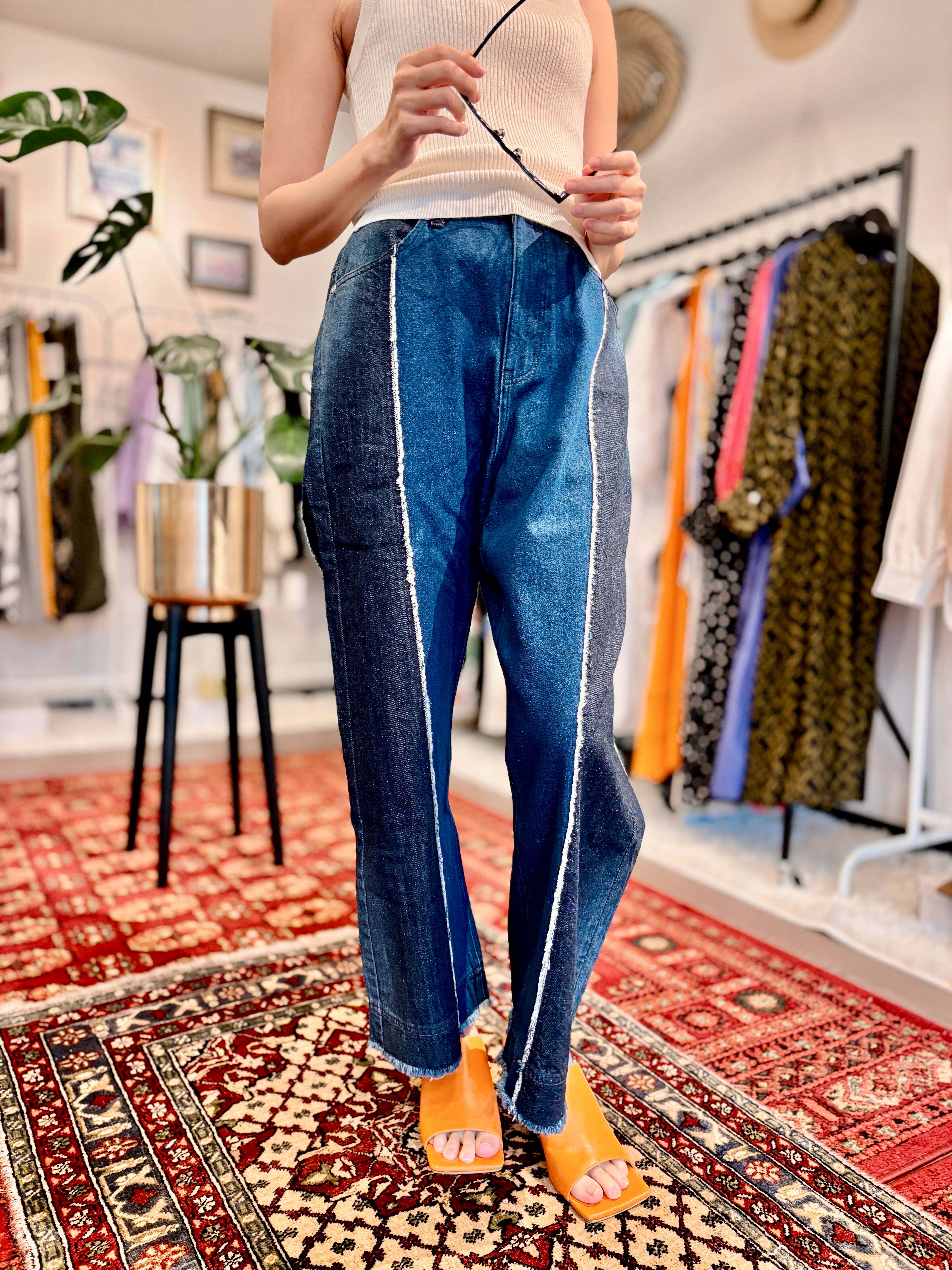 ●腰で履いて頂くとなおルーズな雰囲気が出ますが、ジャストウエストで履いて綺麗目に着こなすのもおススメです。
