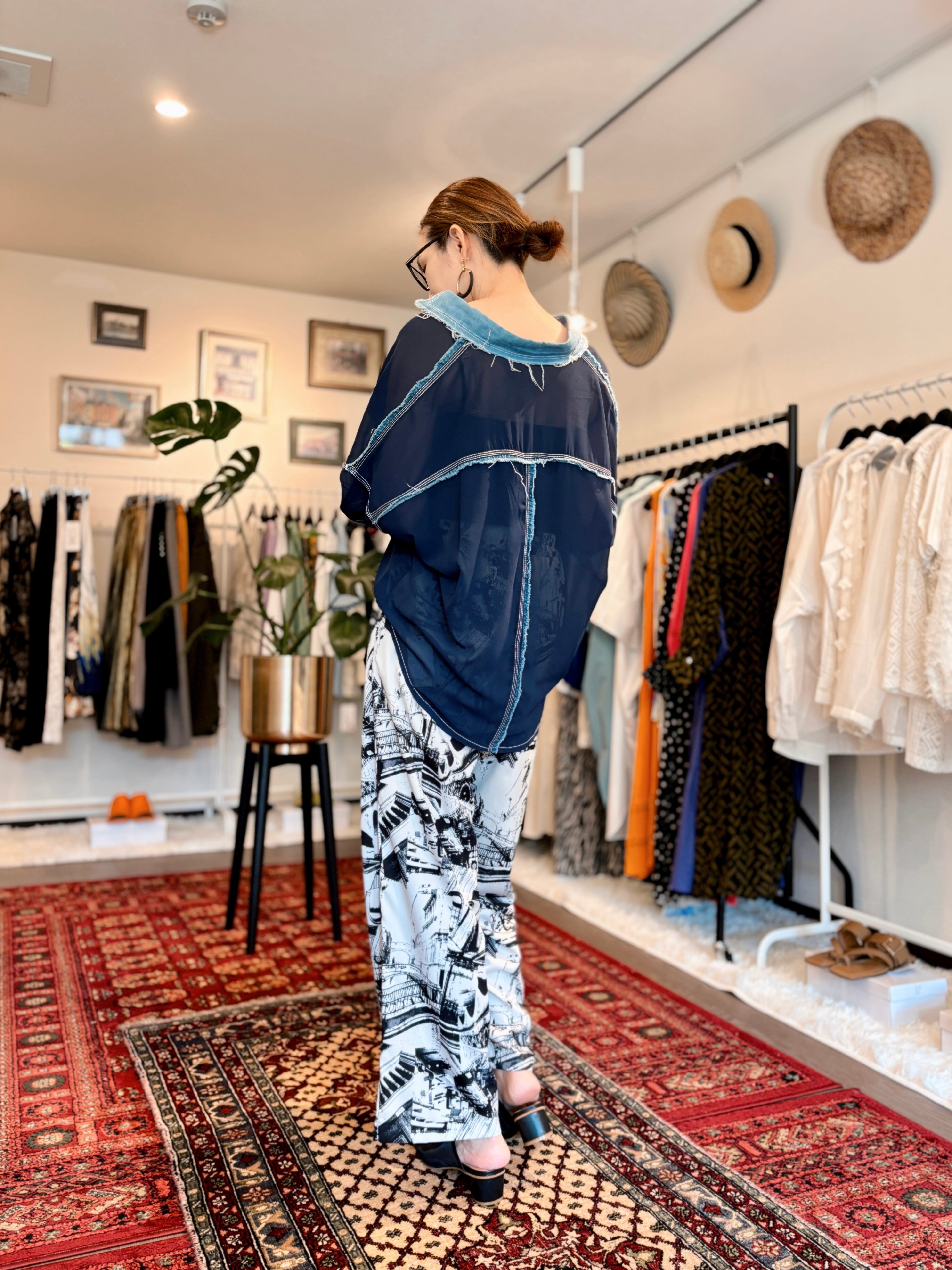 ややルーズさのあるカジュアルな気配を感じるシルエットで、体のラインを拾わないのも嬉しいポイント。 裏地付きですが、少し透け感があります。