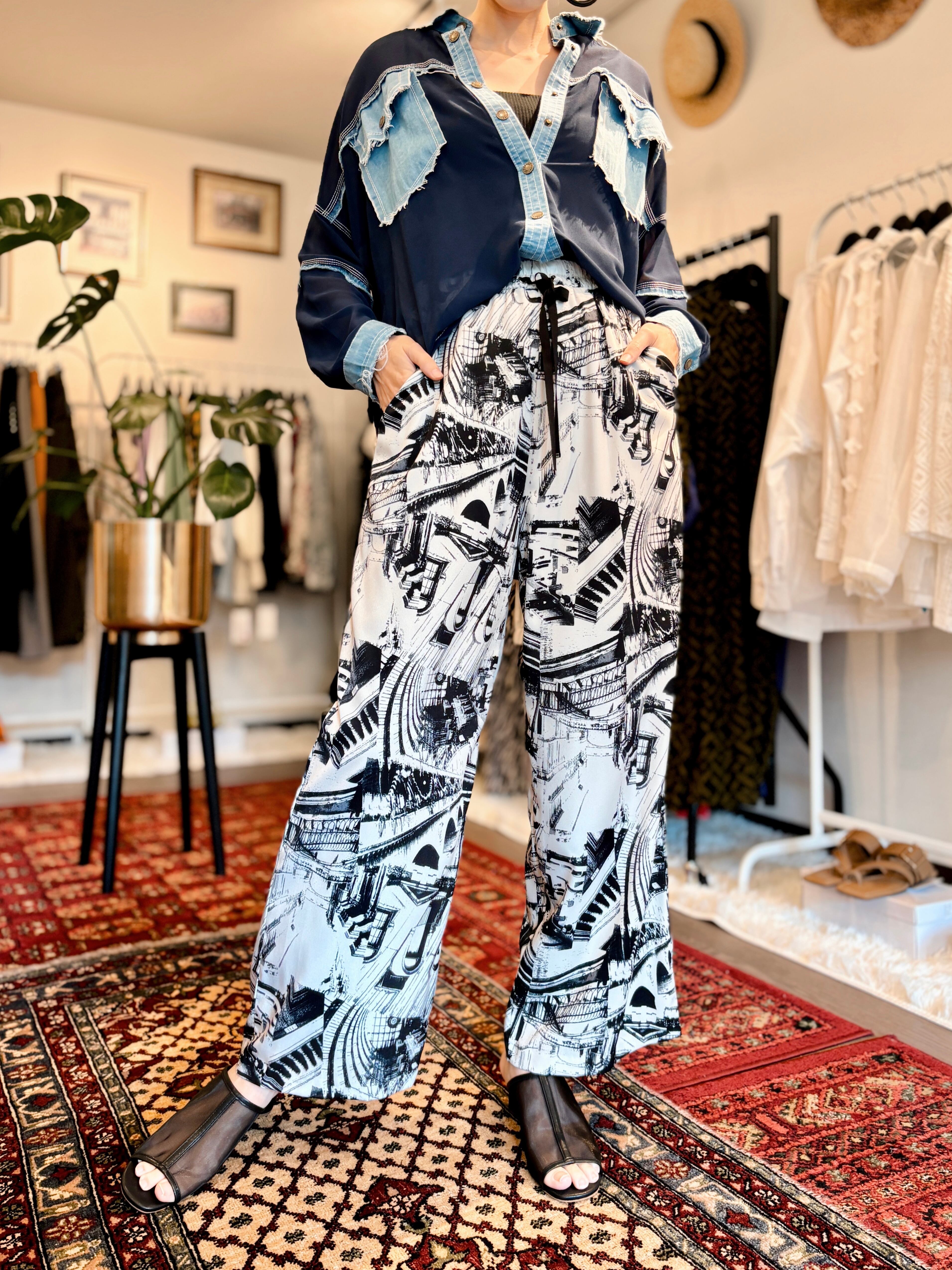 ベネチアの街並みを表現したプリントが魅力的なデザイン。