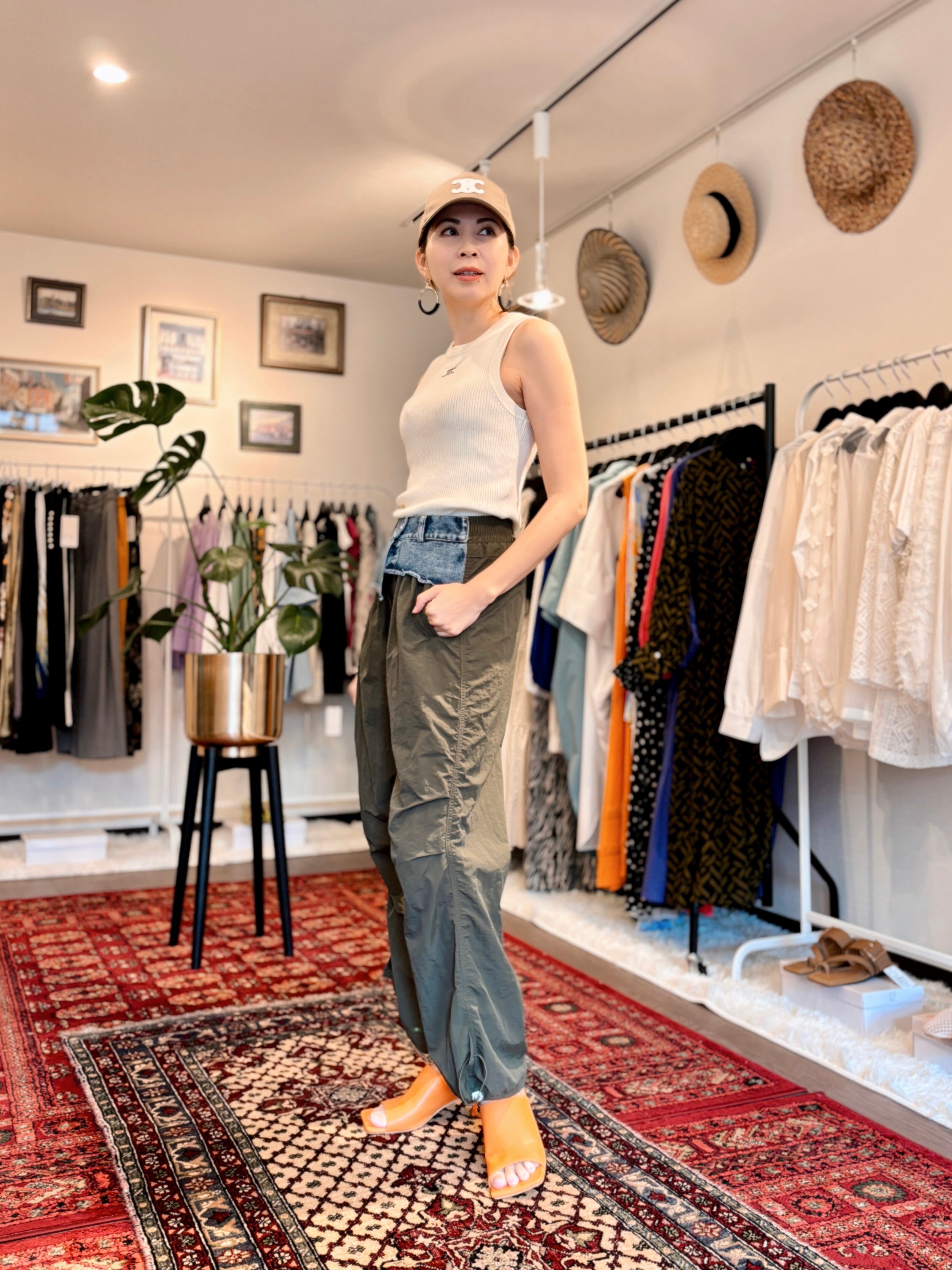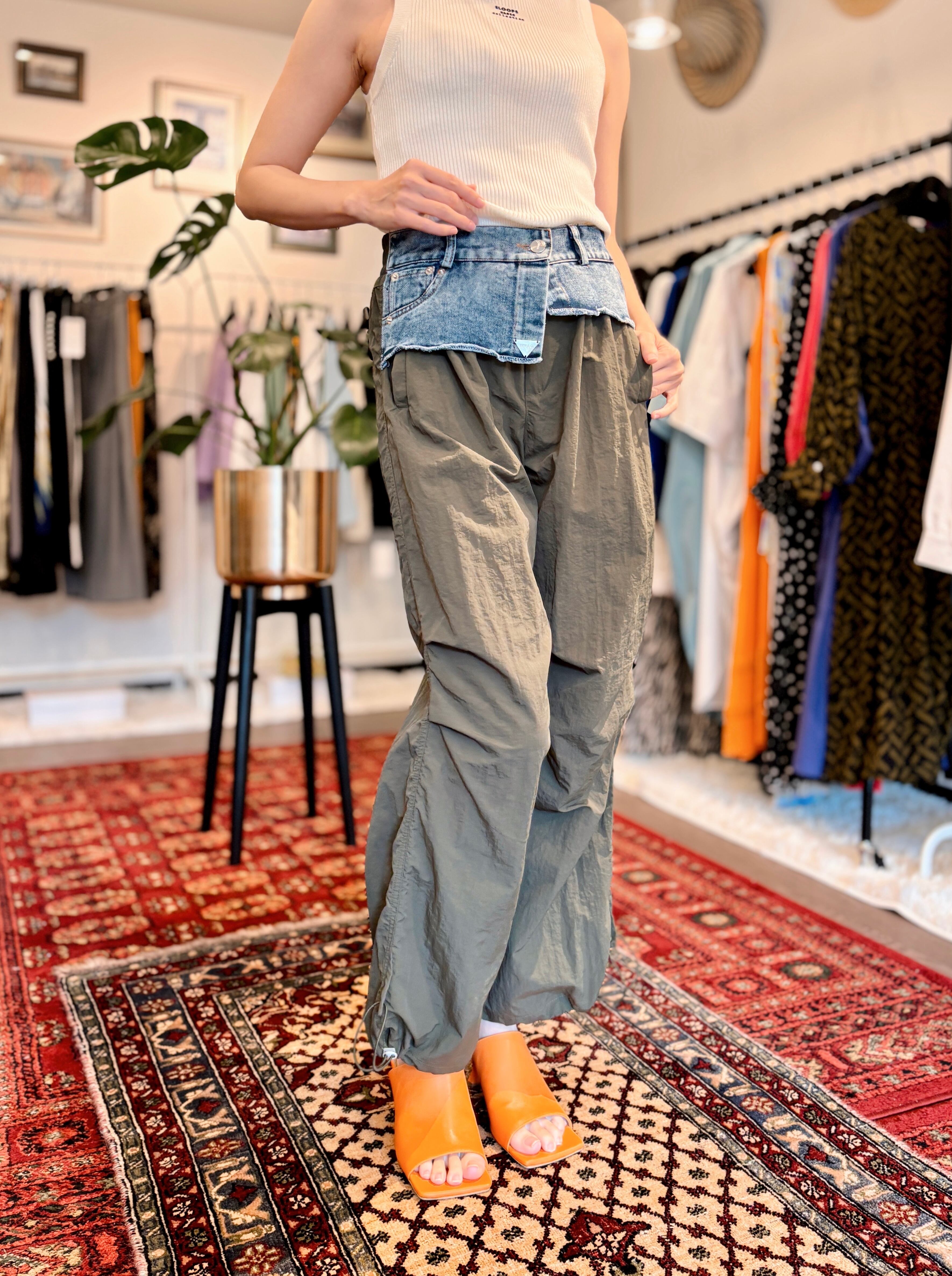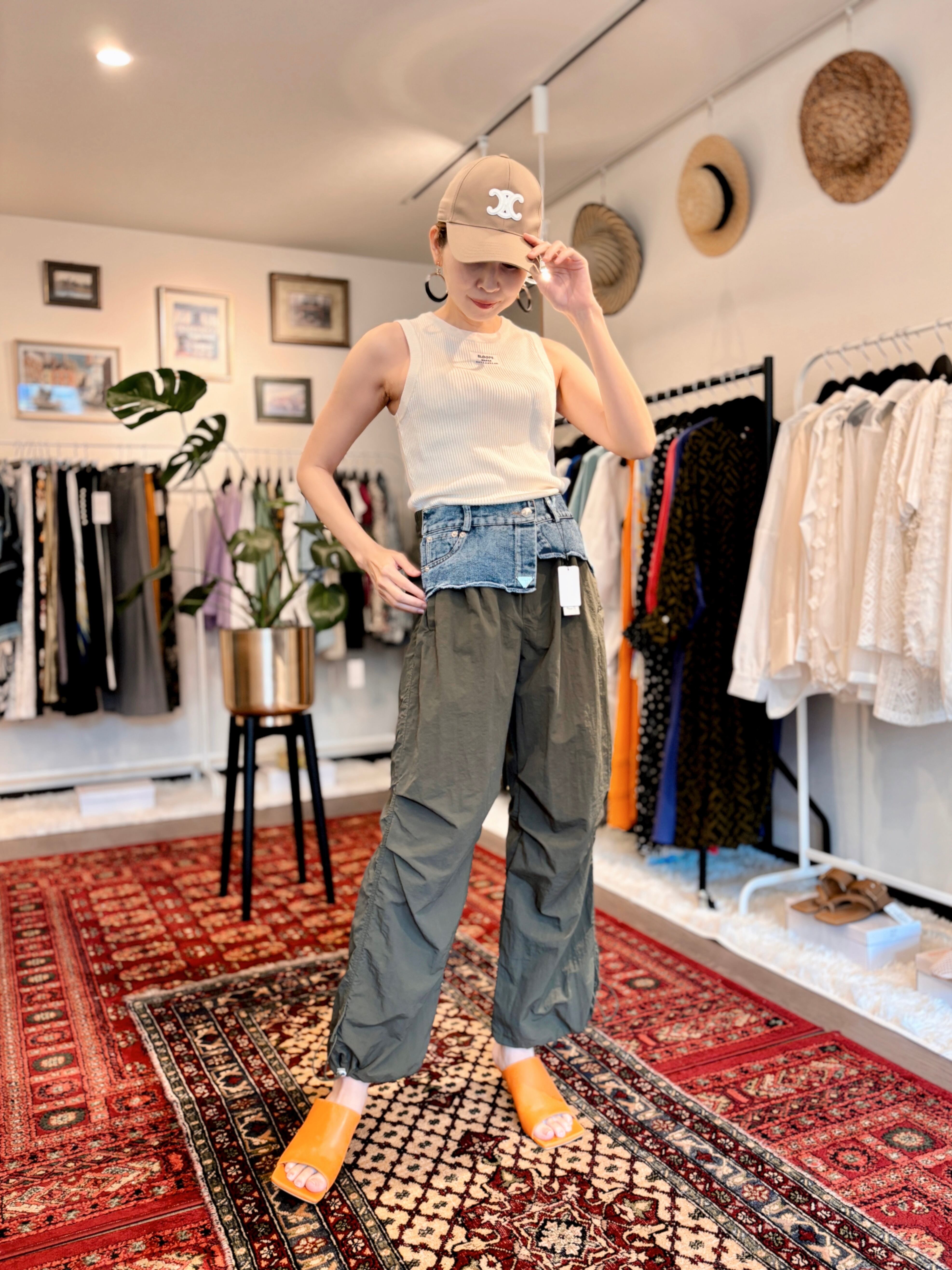 裾にアジャスターも付いているので、ワイドシルエットからジョガーパンツシルエットとお好みで絞って頂くことも可能です。