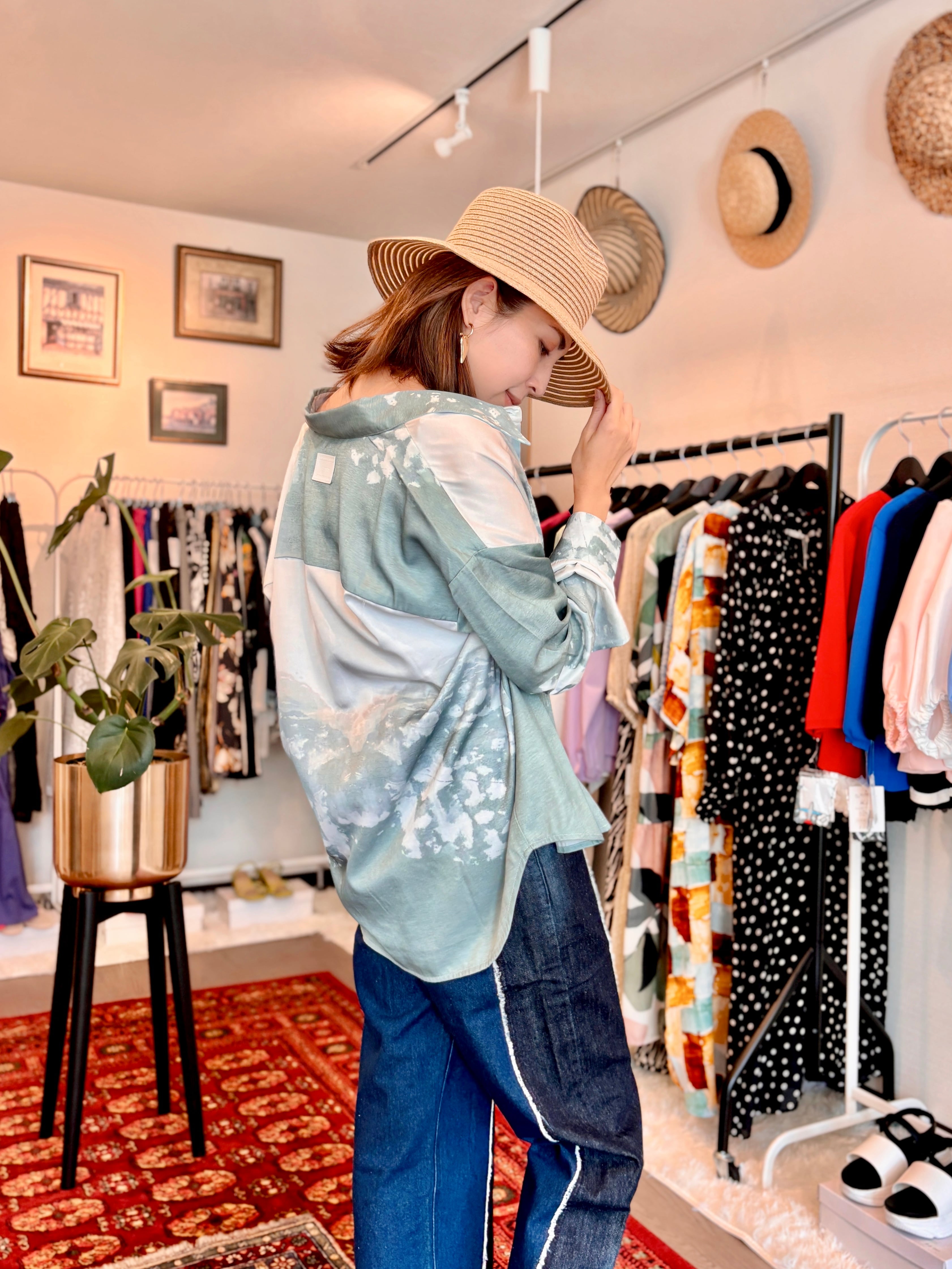 見る角度によって違ったニュアンスが楽しめる雰囲気のあるシャツ。