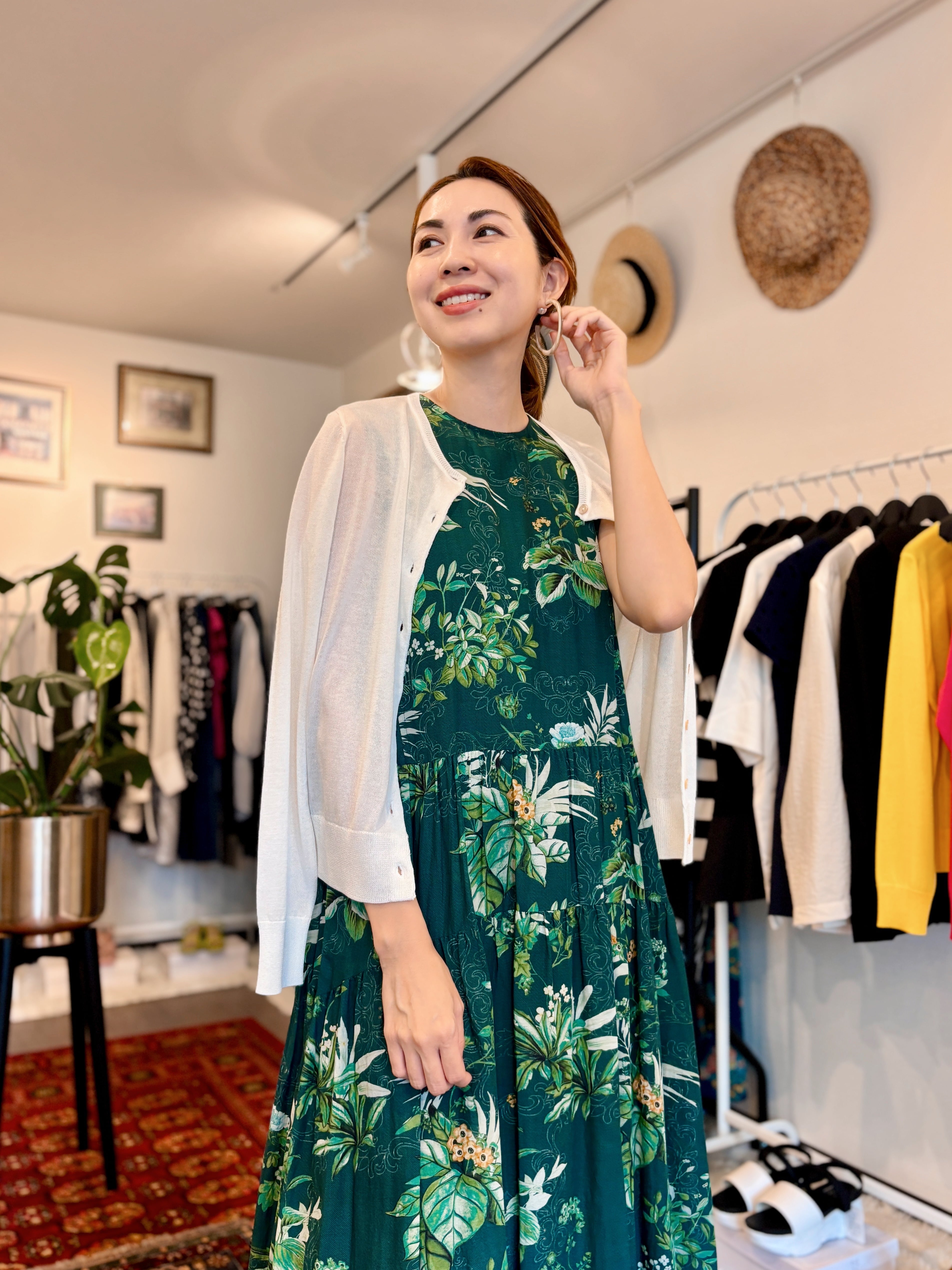 たっぷり生地を使ったフレアシルエットで、360度どこから見ても洒落見えし、ボリュームを出したスカートが、ふんわりドラマチックな仕上がり。