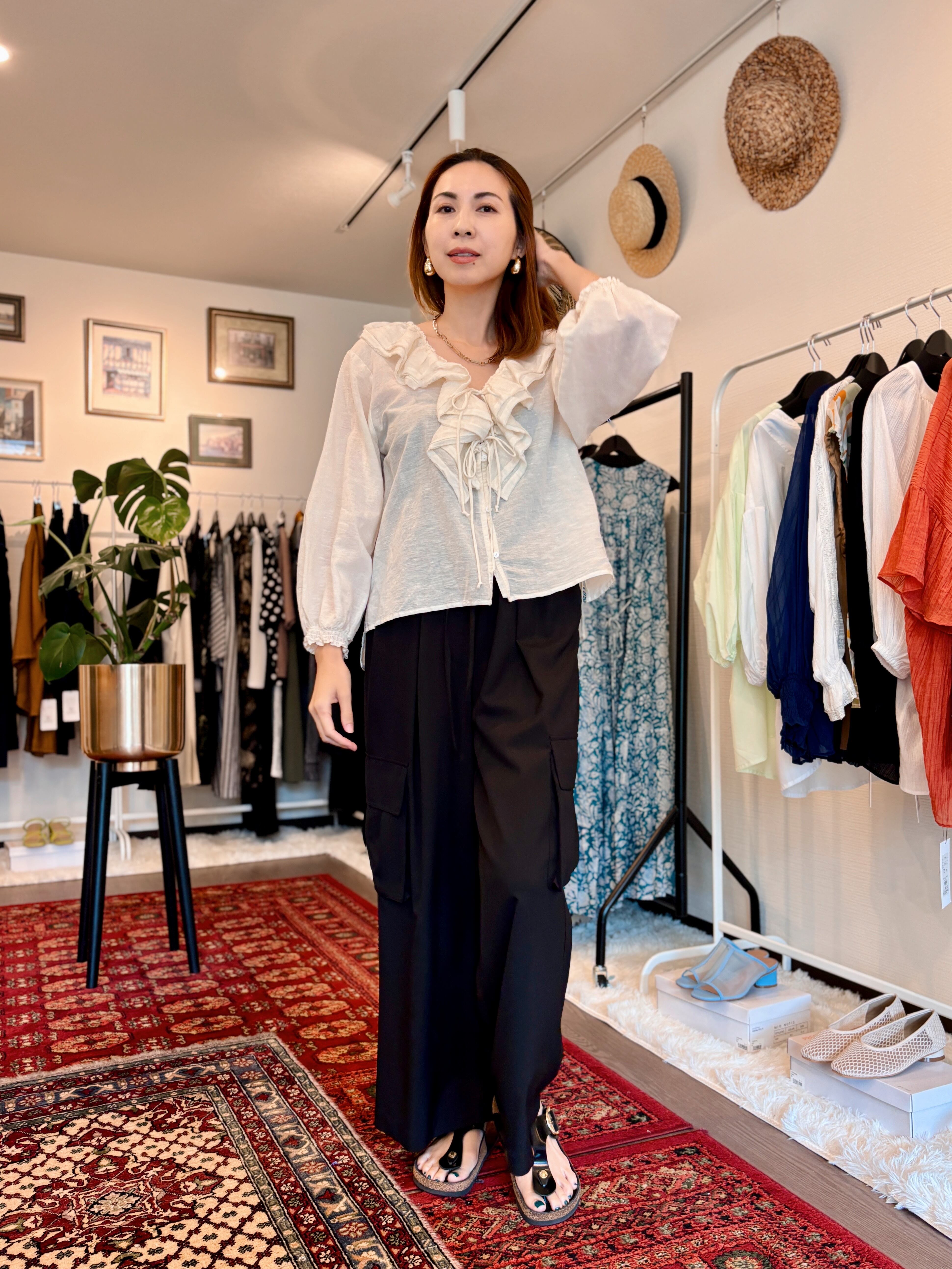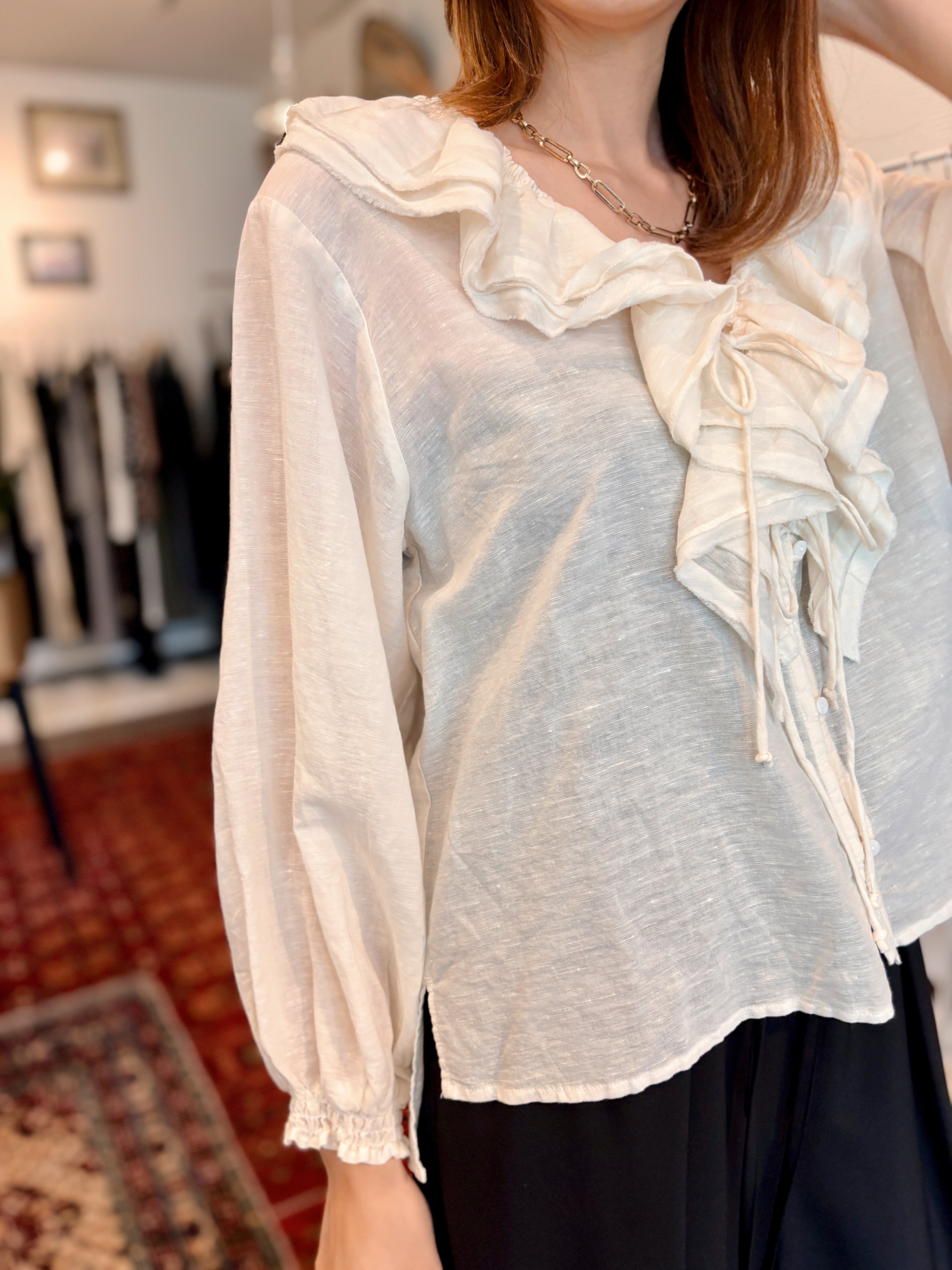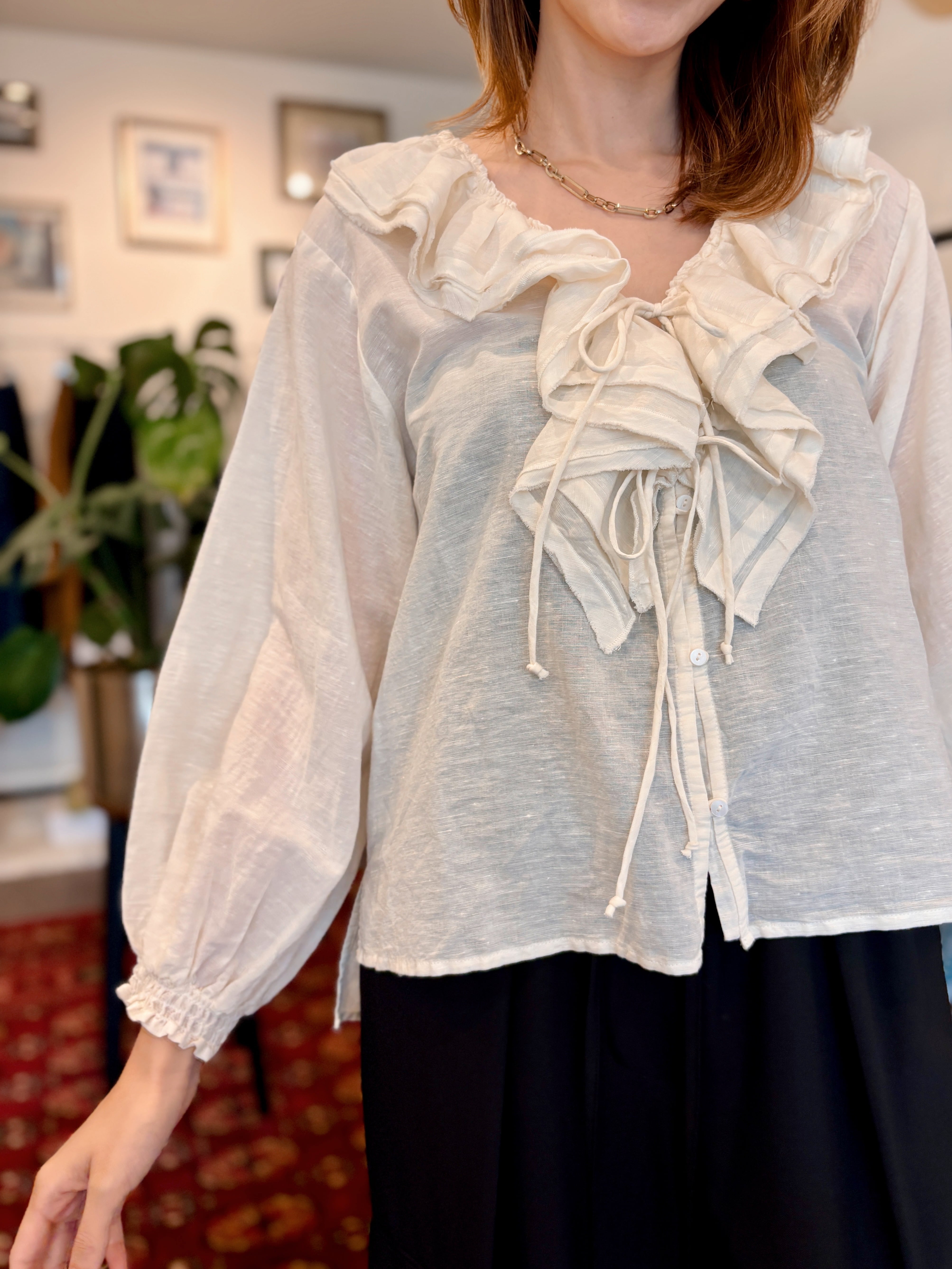 リネンコットンフリルカラーブラウス