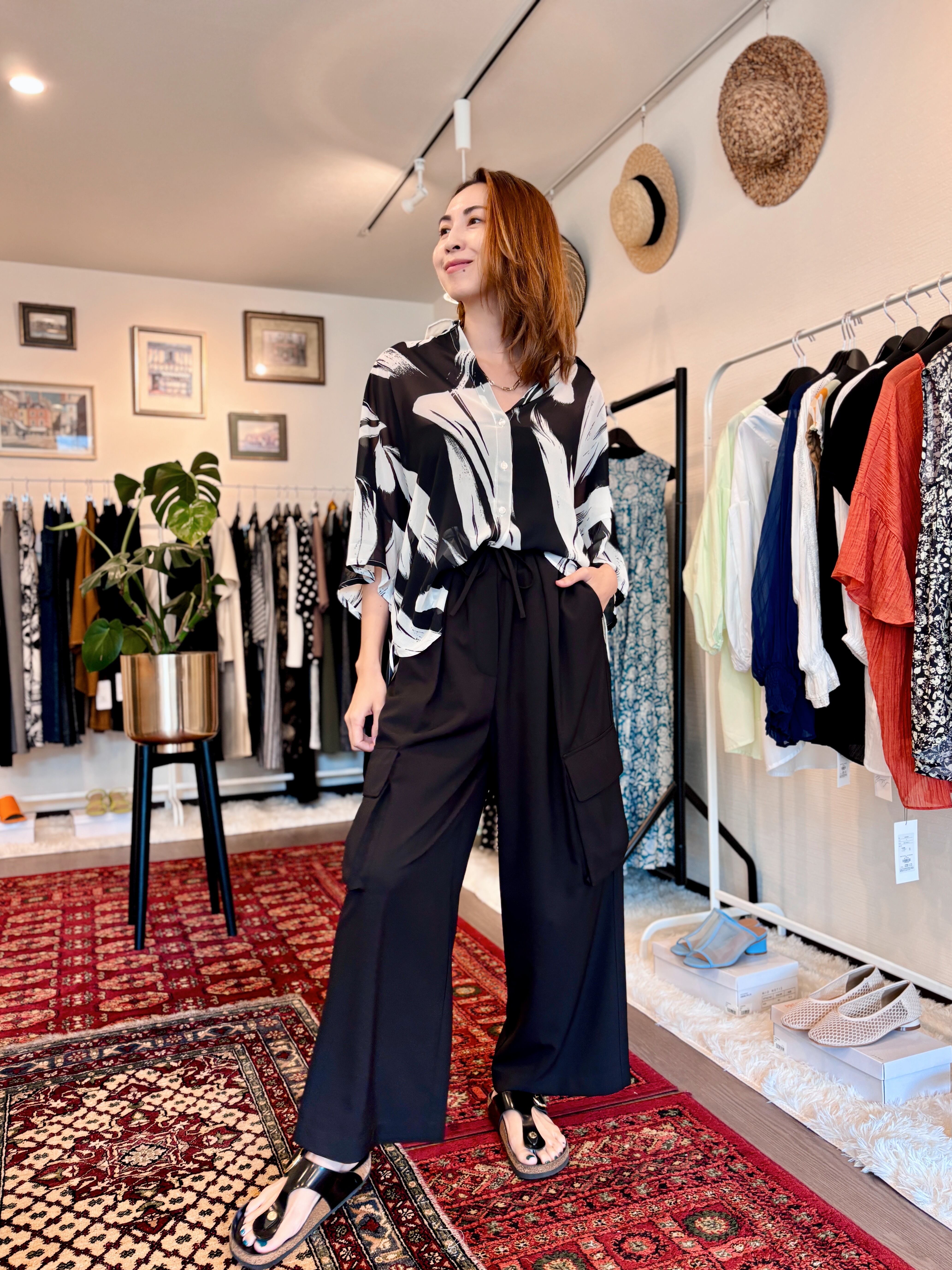 さらっとした生地感で快適な着心地の為、真夏の一枚着としてはもちろん、前を開けて羽織としてもお使いいただけます。ほどよい透け感がカジュアルになりすぎず、大人のニュアンス感を引き立たせてくれます。