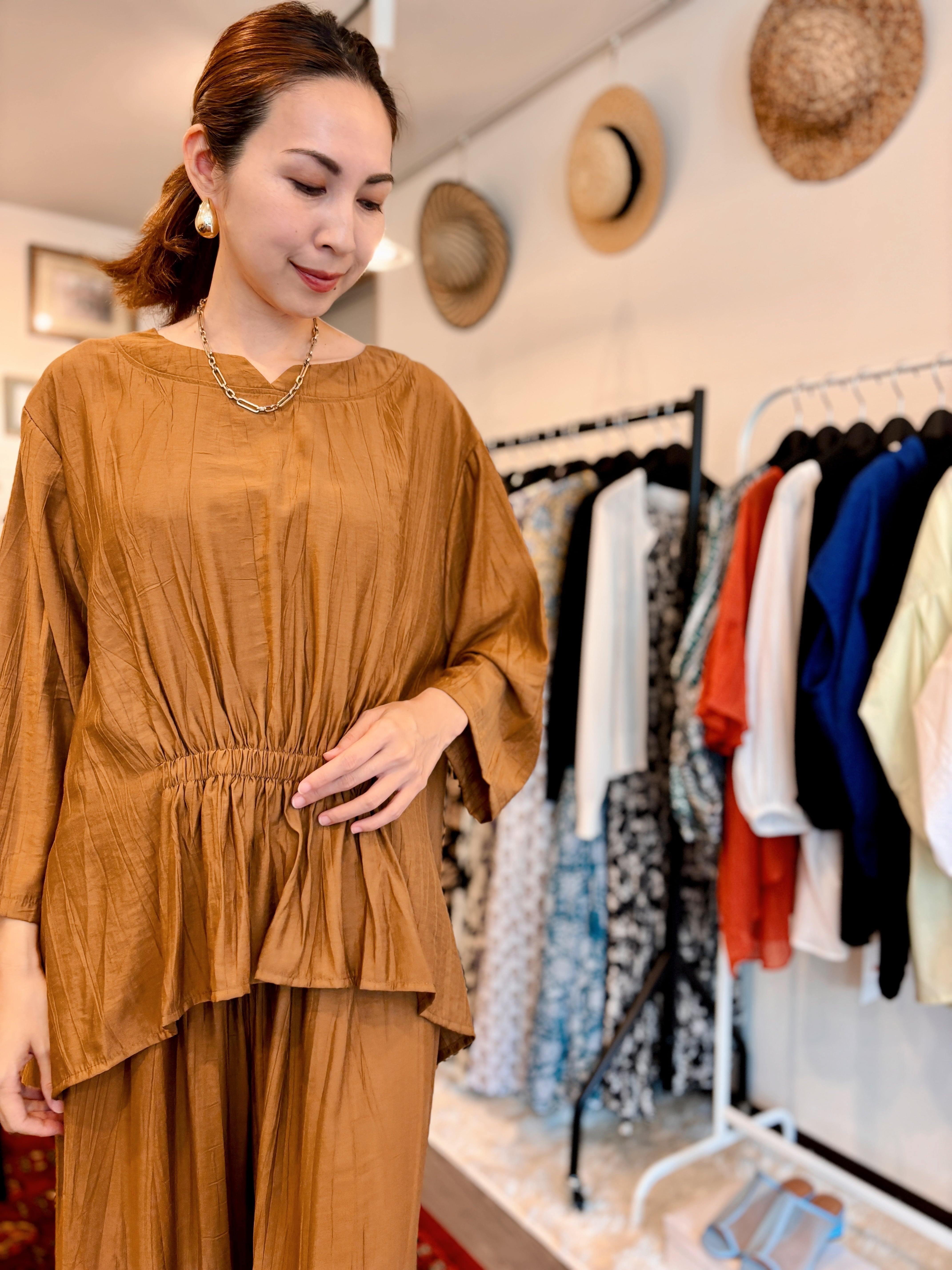 さらっとライトな生地感なので、今の時期は一枚で、寒くなってきたらインナーをレイヤードして、ロングシーズンご着用いただけます。