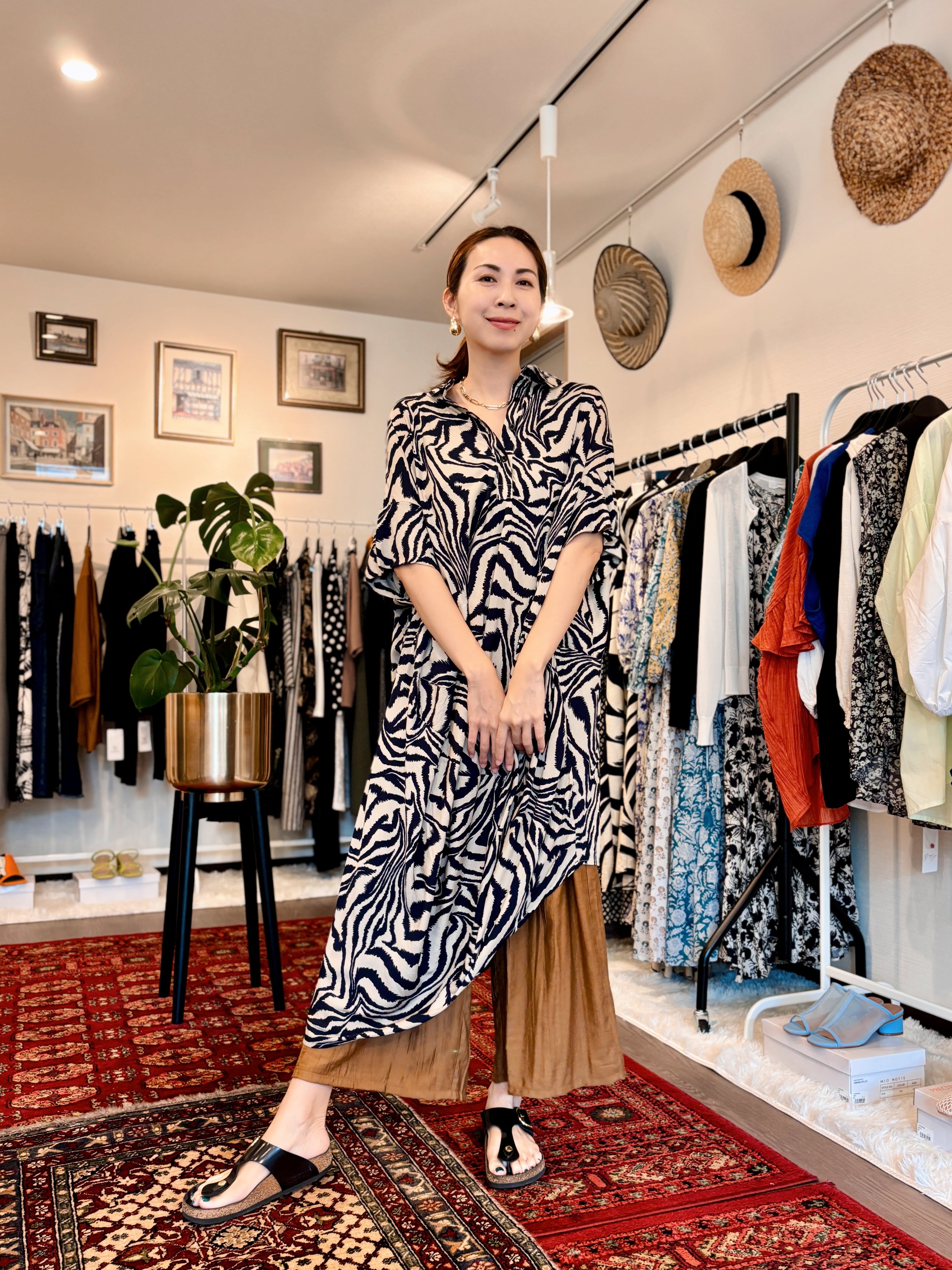 さらっと着られる夏にぴったりのゼブラ柄ワンピース。