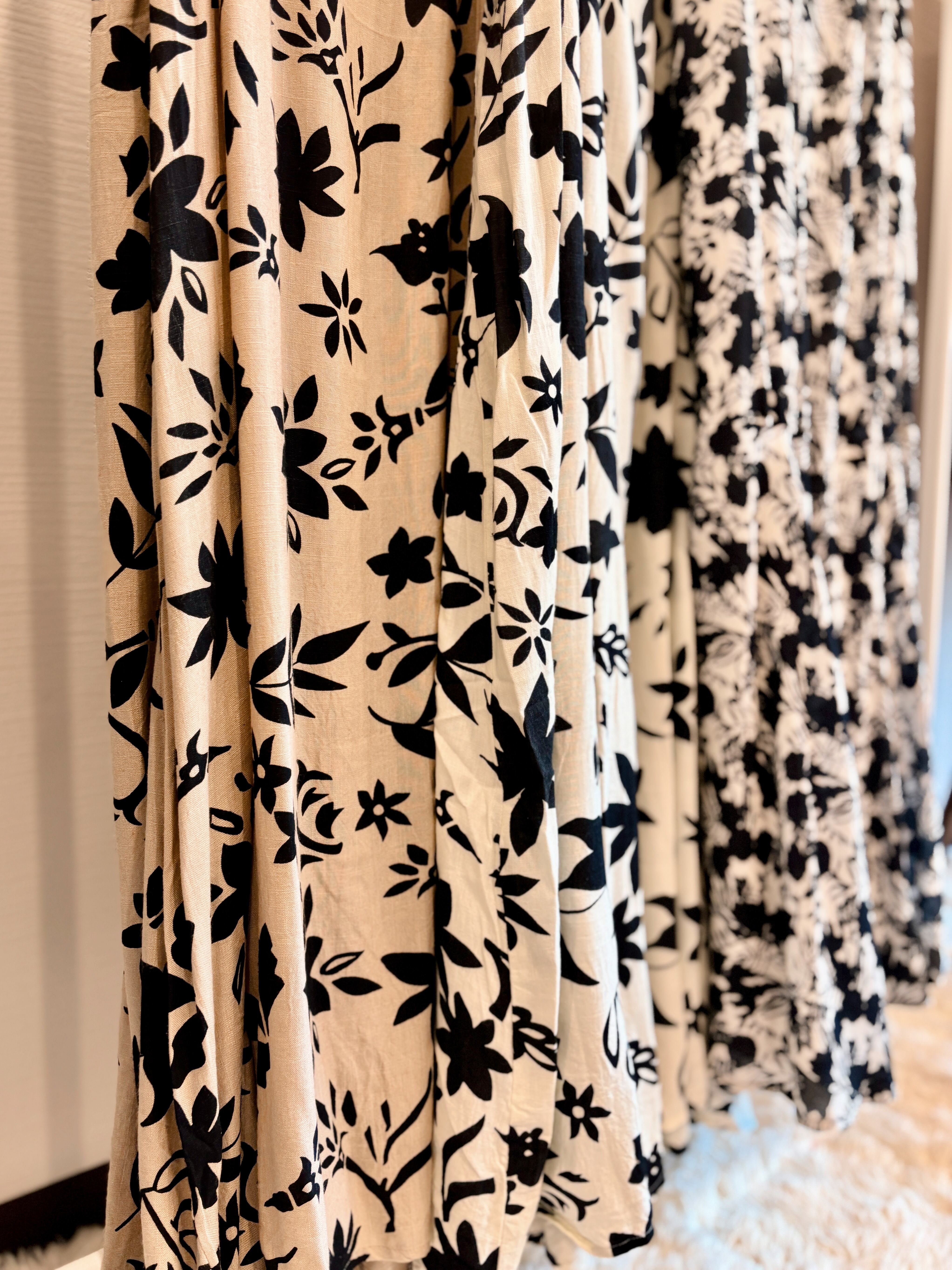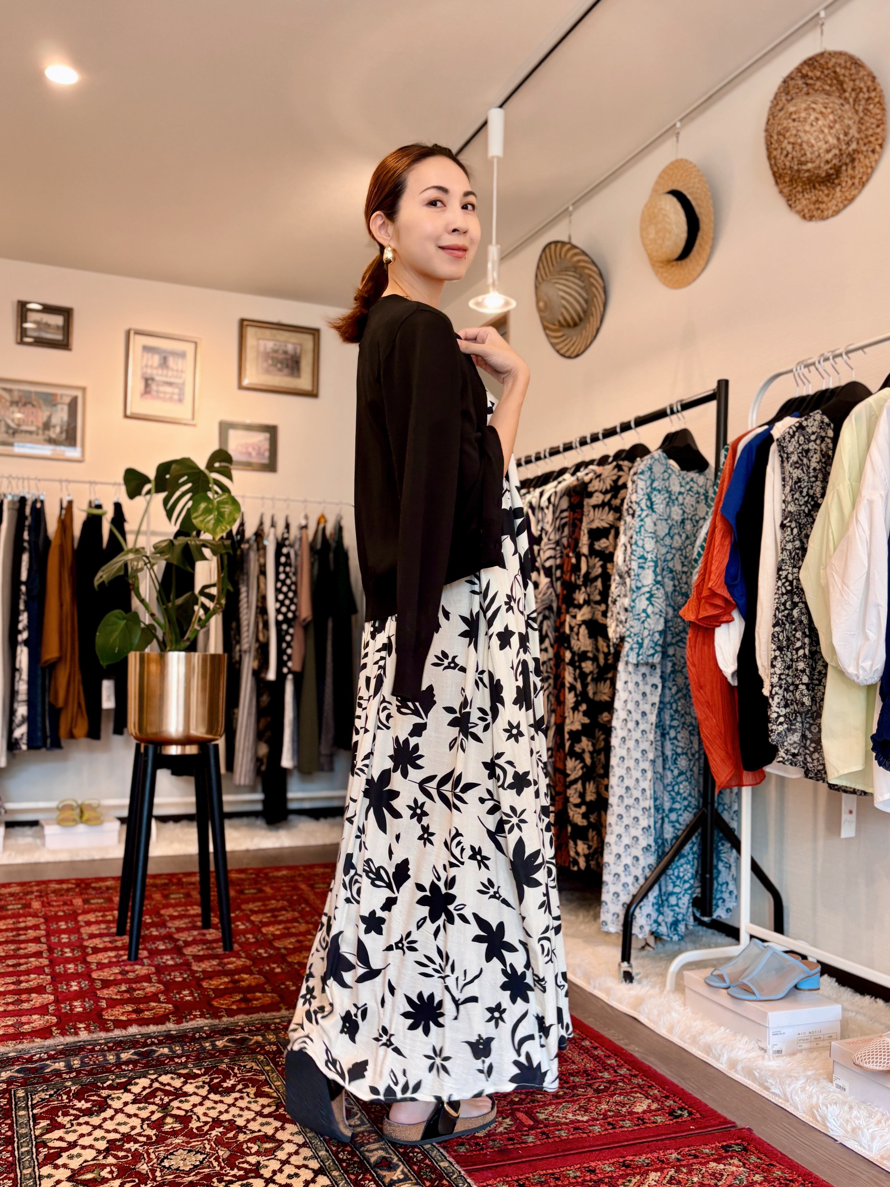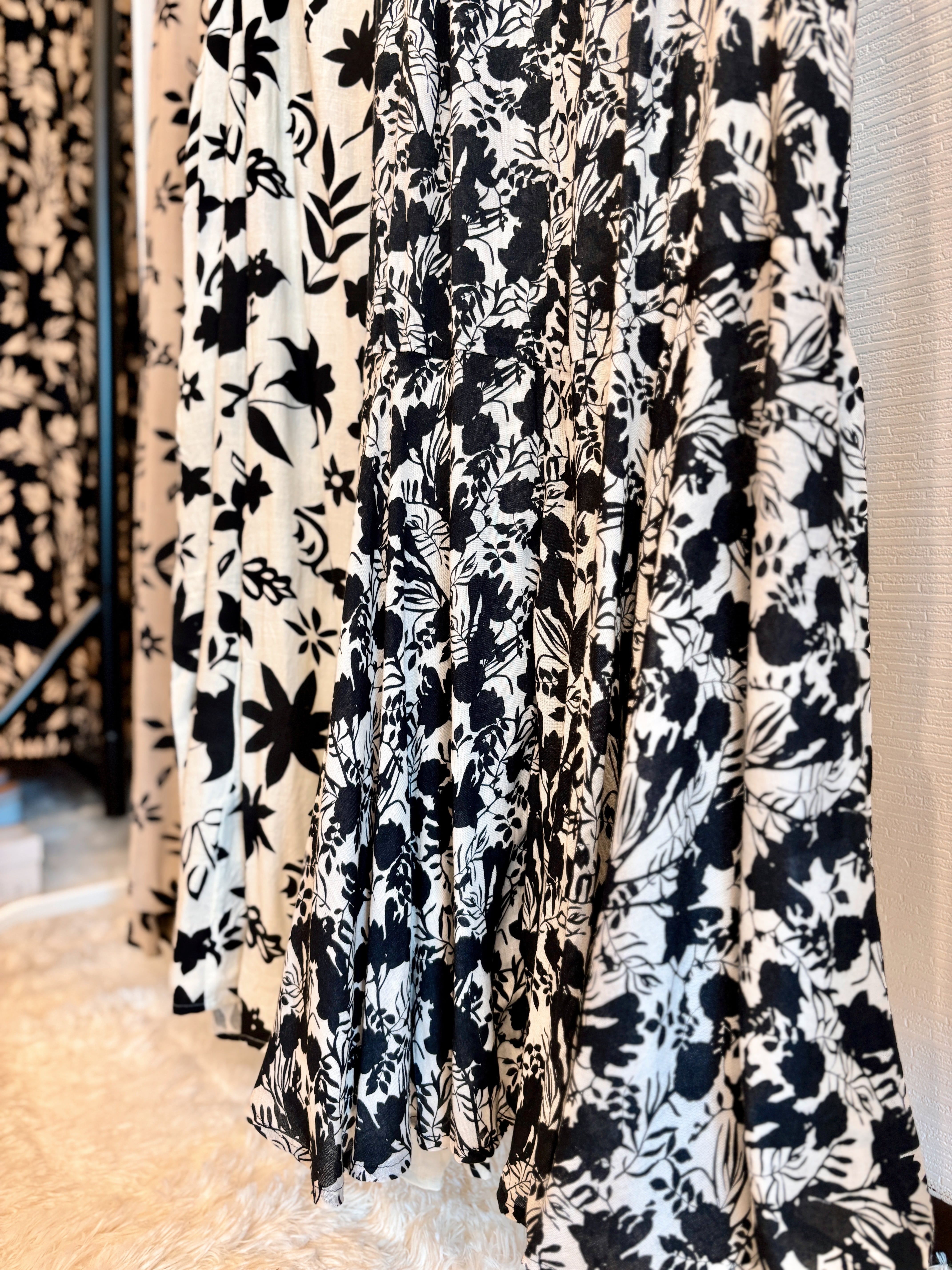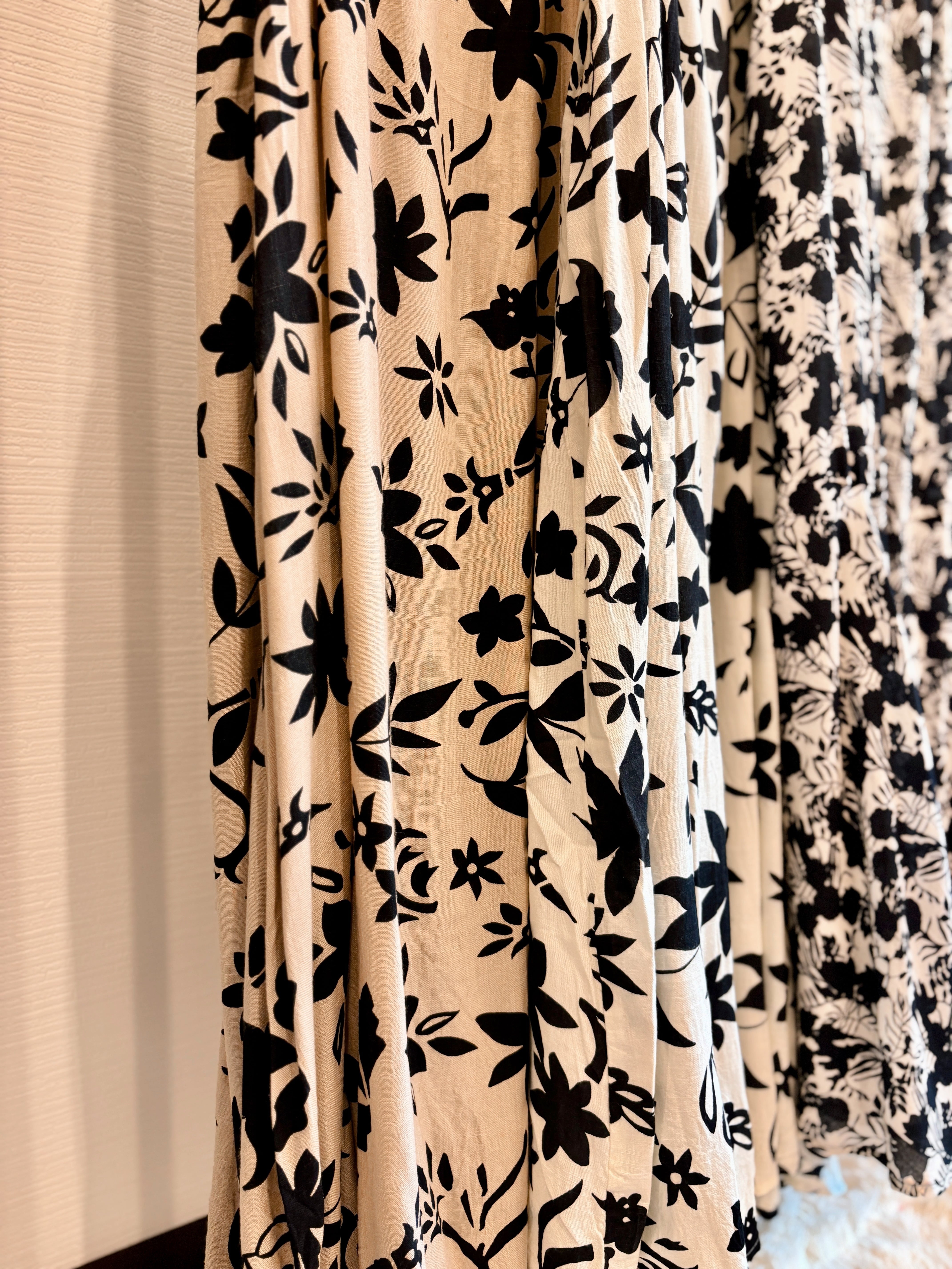 影絵のようなモノトーンの花柄が、大人っぽい印象に。