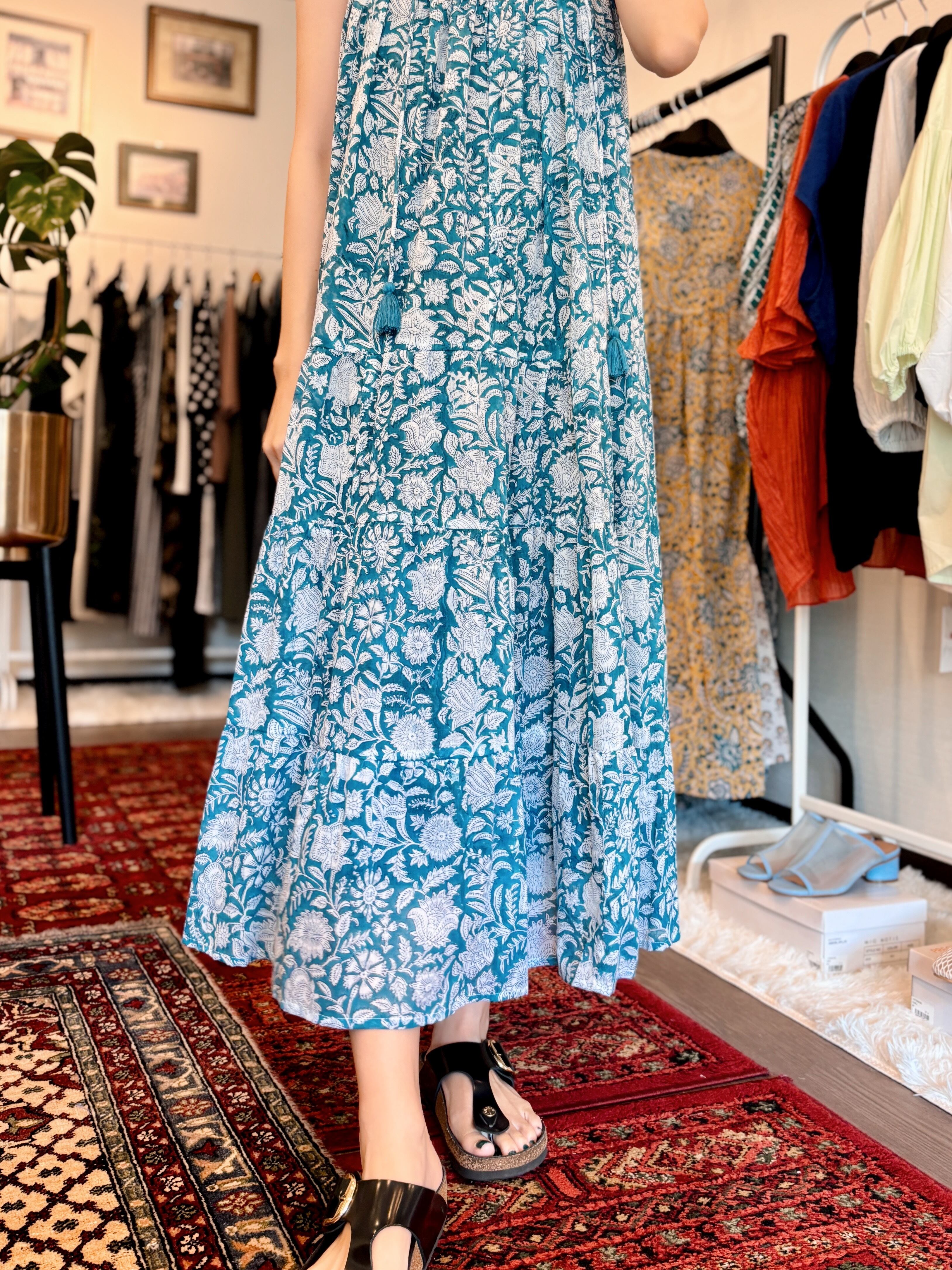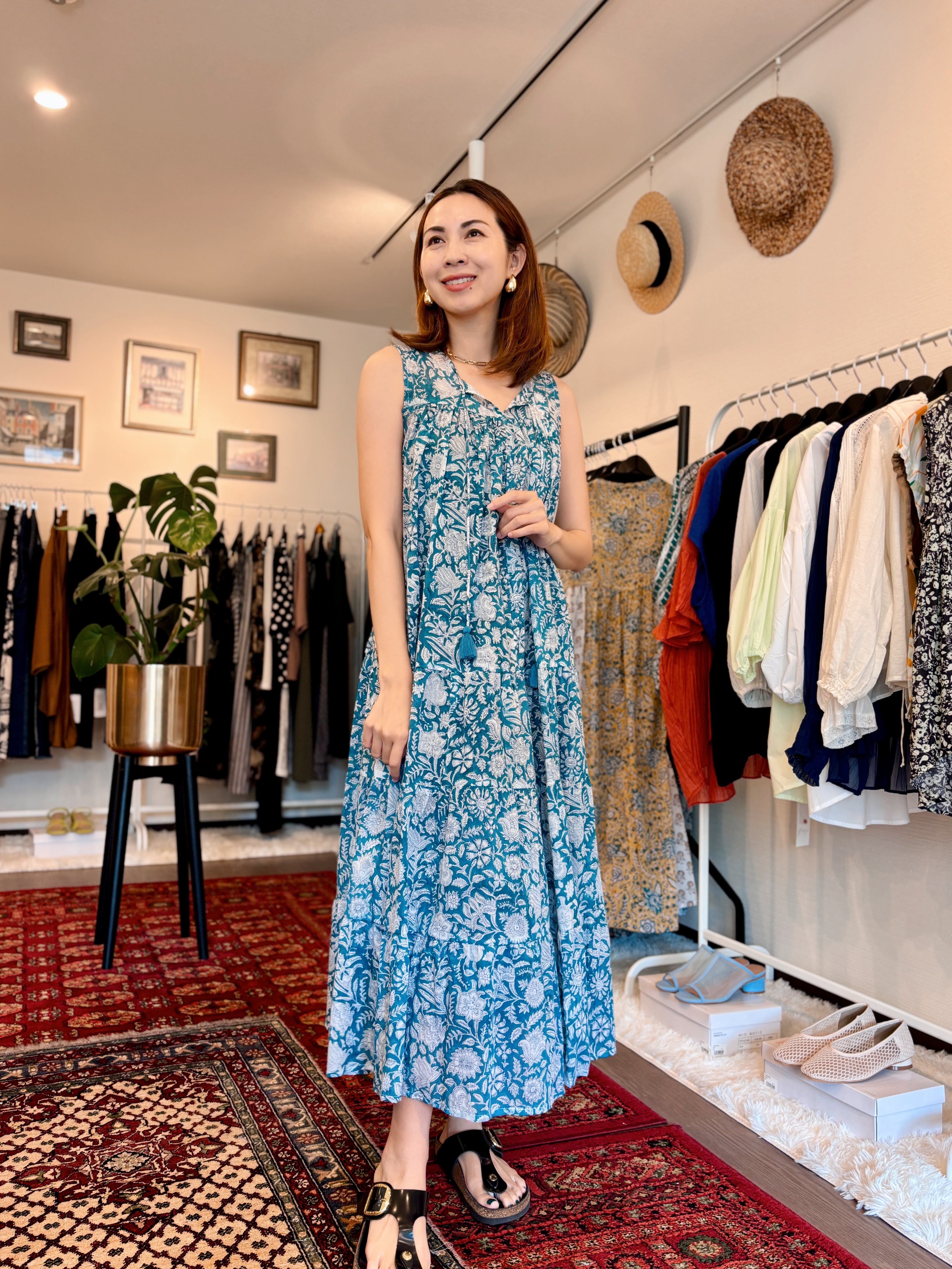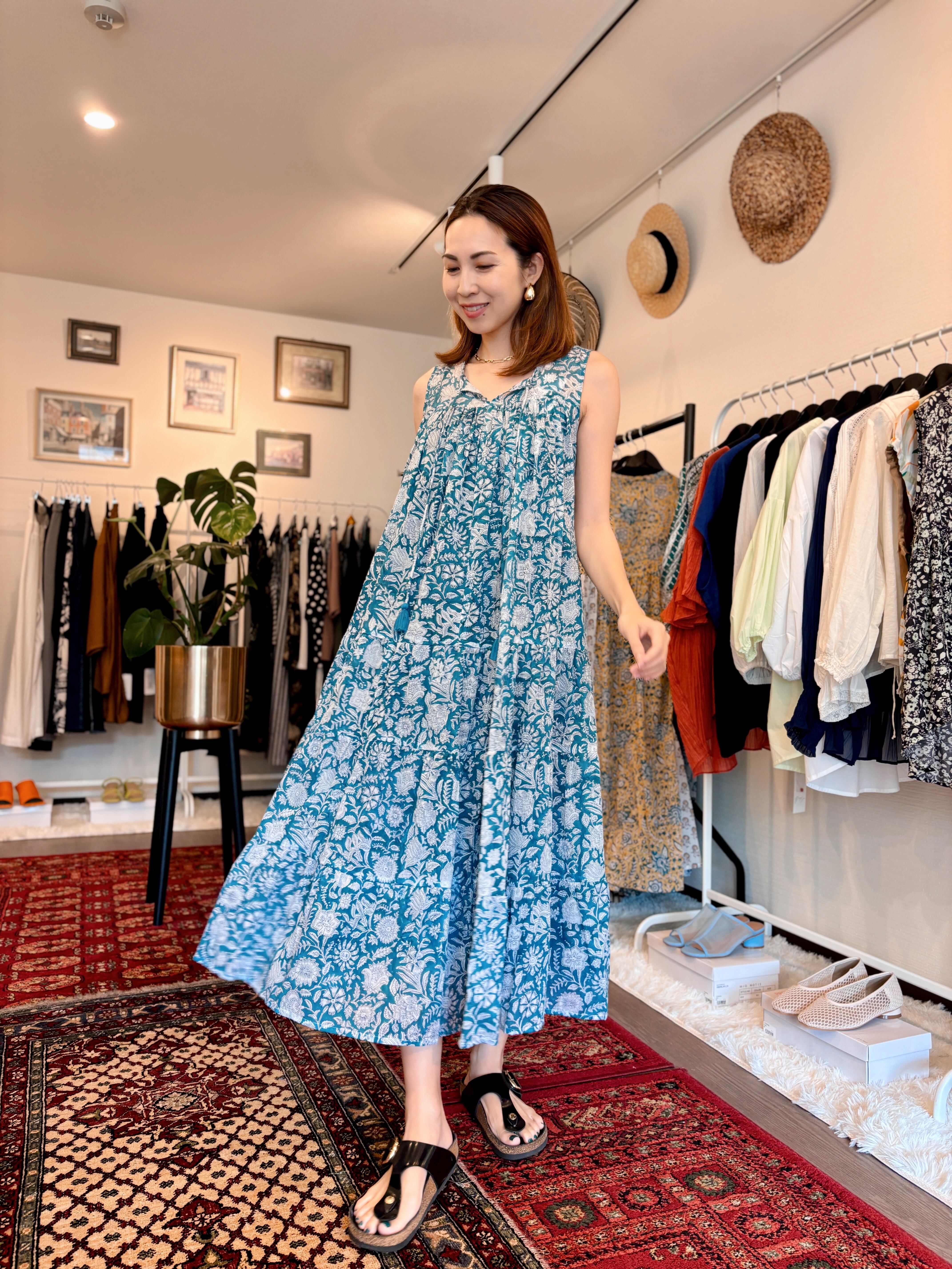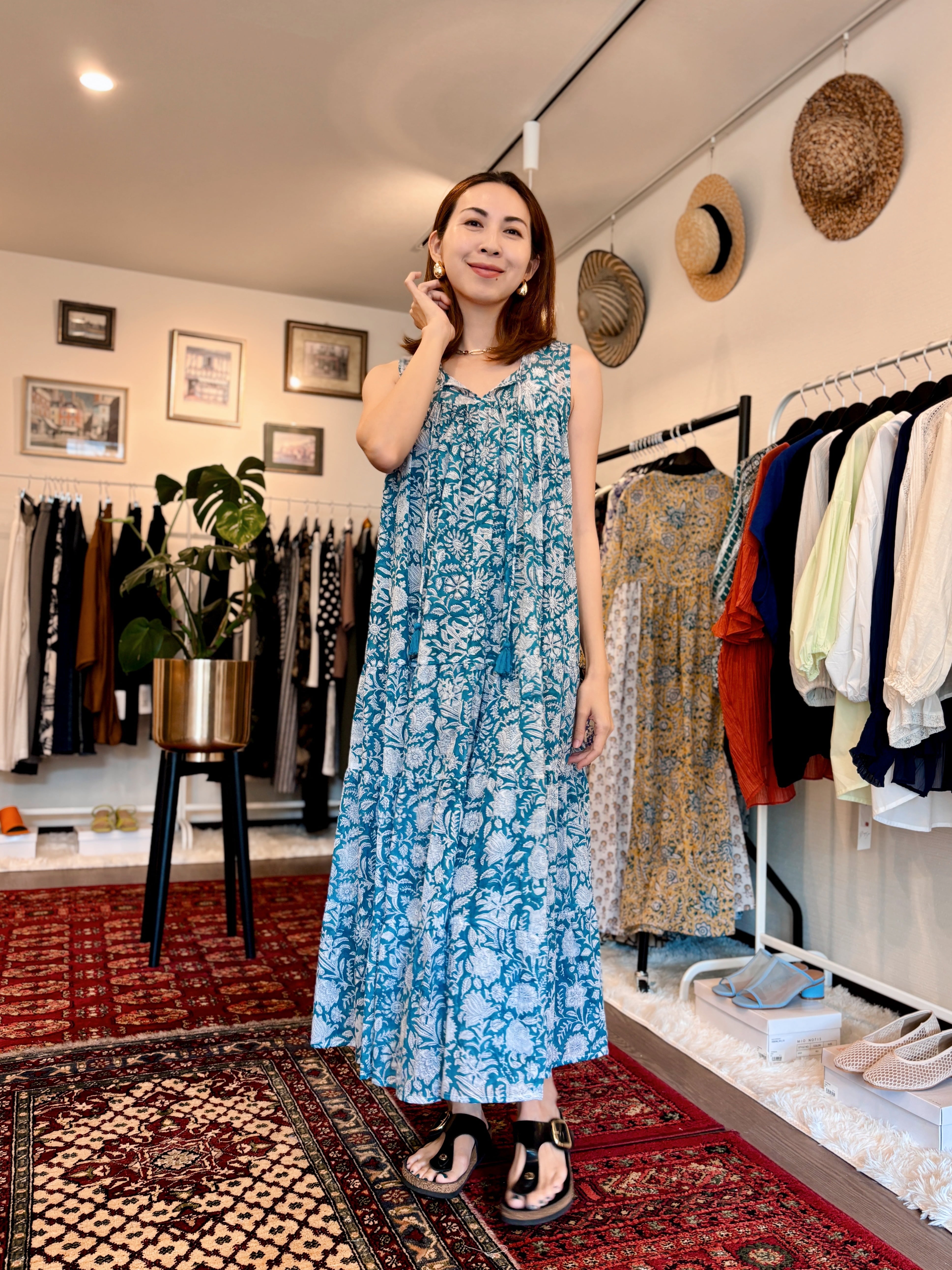 インドの伝統的なブロックプリントを使ったノースリーブのワンピース。