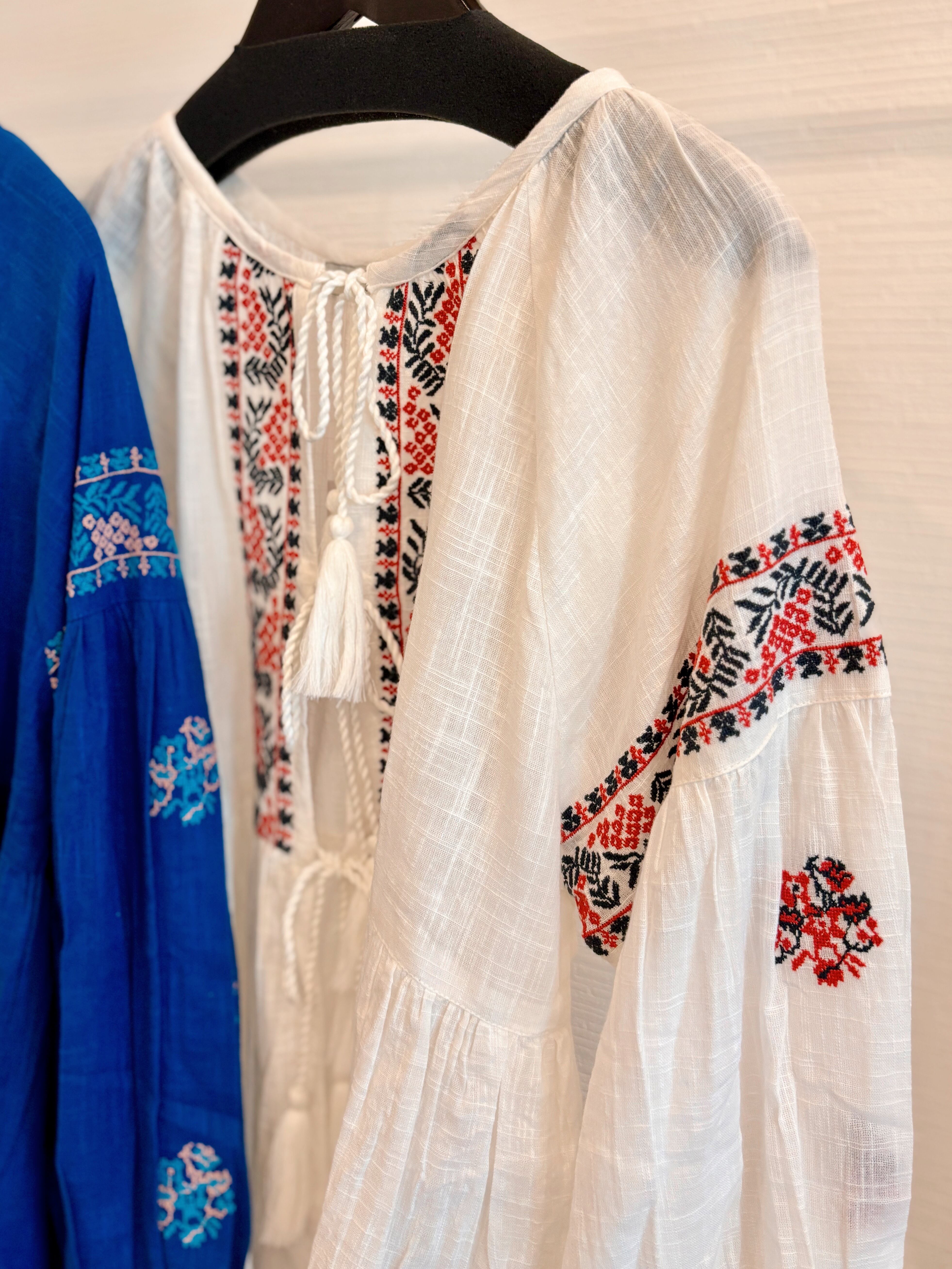 胸元と袖のとても細かな刺繍がが入っているのがポイントの美しいブラウス。