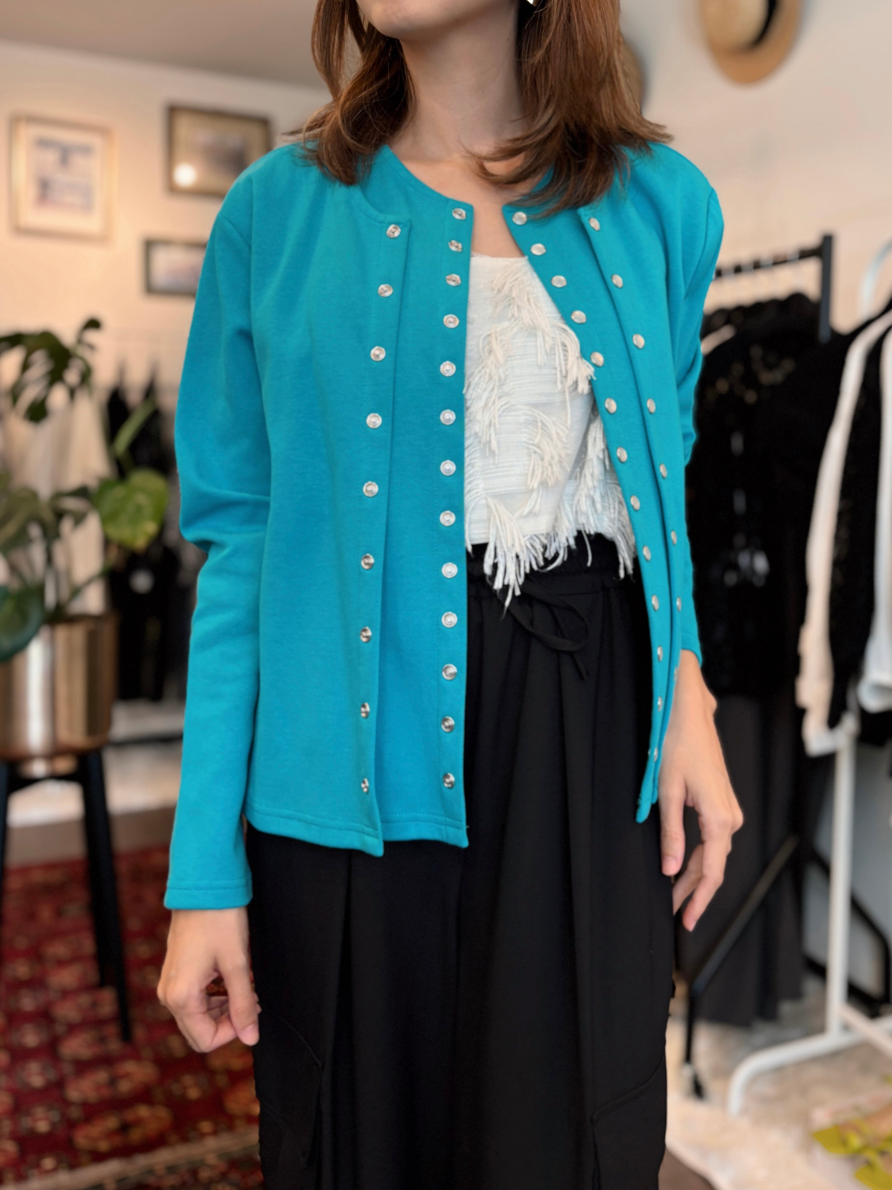 シンプルなコーディネートでも、このスナップボタンのアクセントがさりげなく個性をプラスしてくれます。