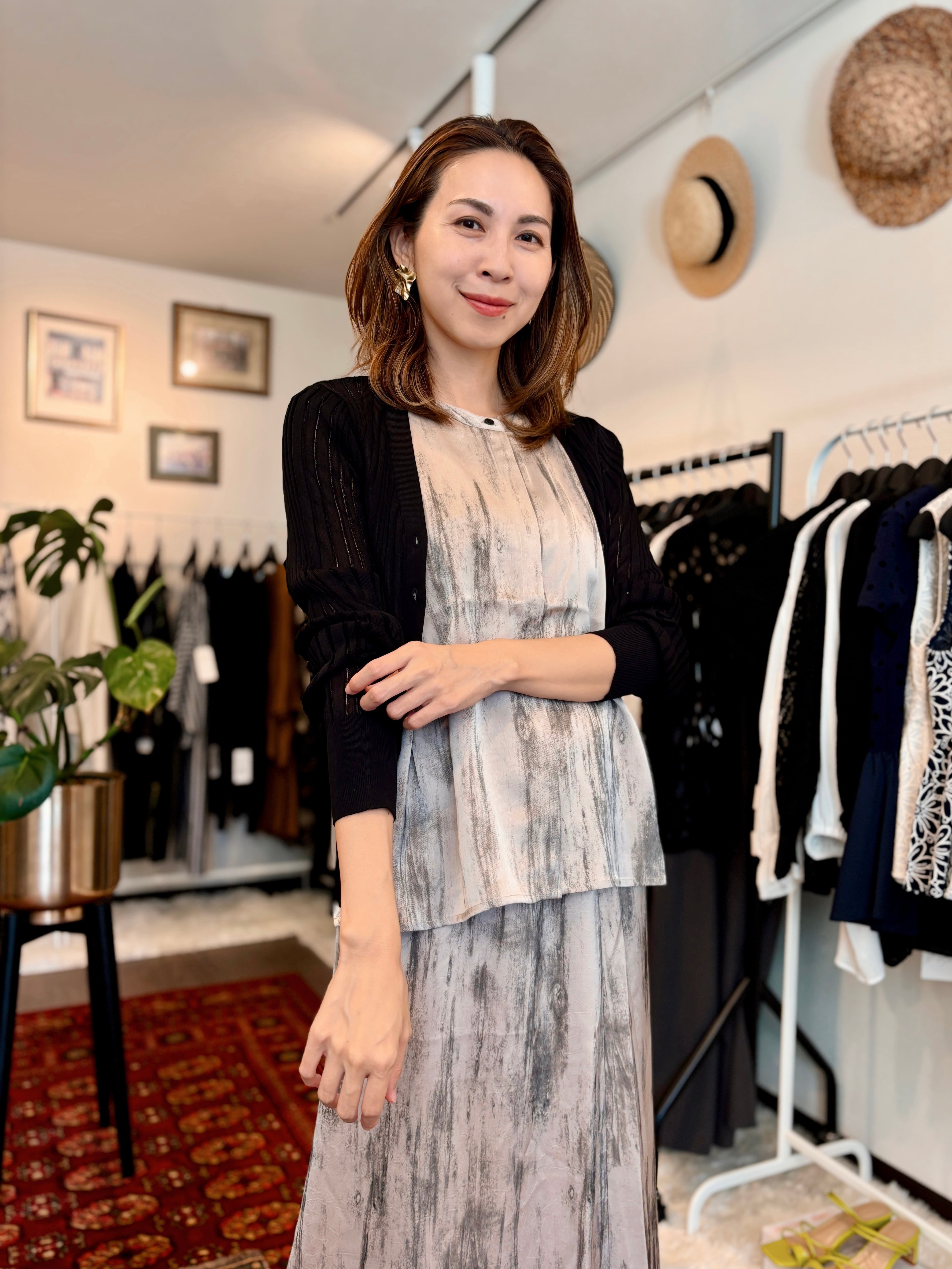 ラグジュアリーな雰囲気のニュアンスアート柄。サラッと軽く着心地良いサテン素材。