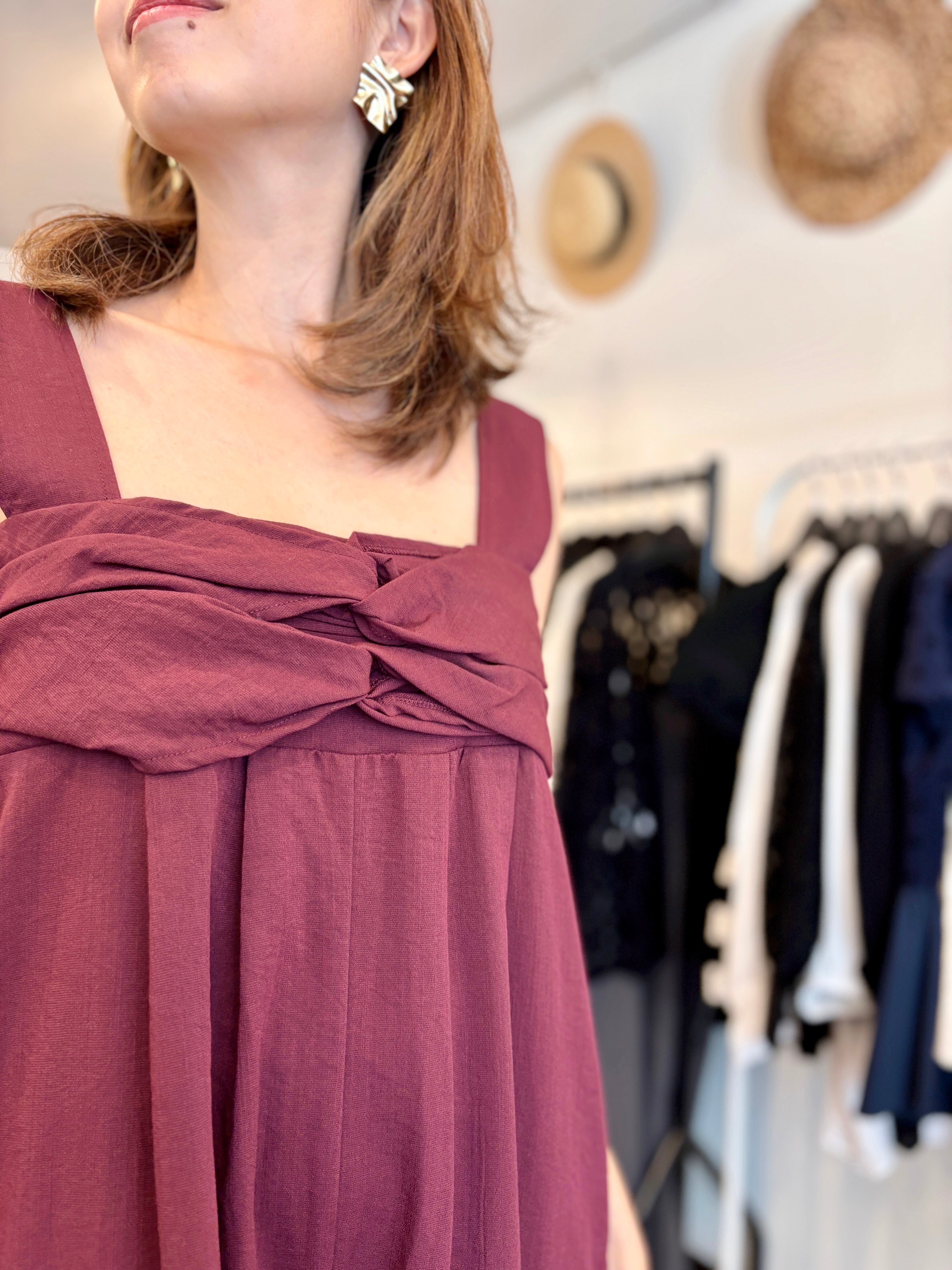 立体感のあるフロントのデザインは、胸元に華やかさをプラスしてくれます。