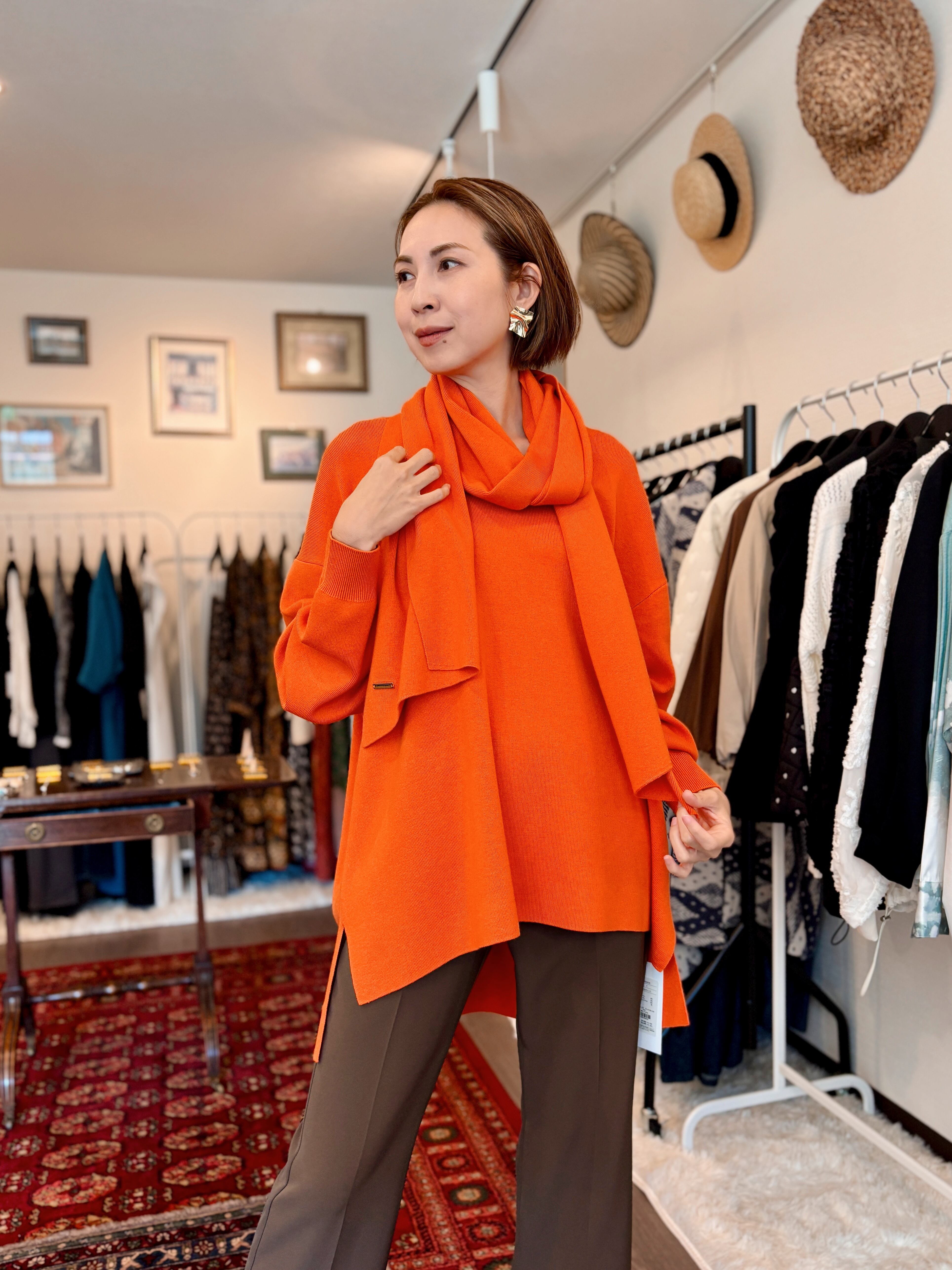 Vネックニットと同素材のストールがセットになったニットが登場。