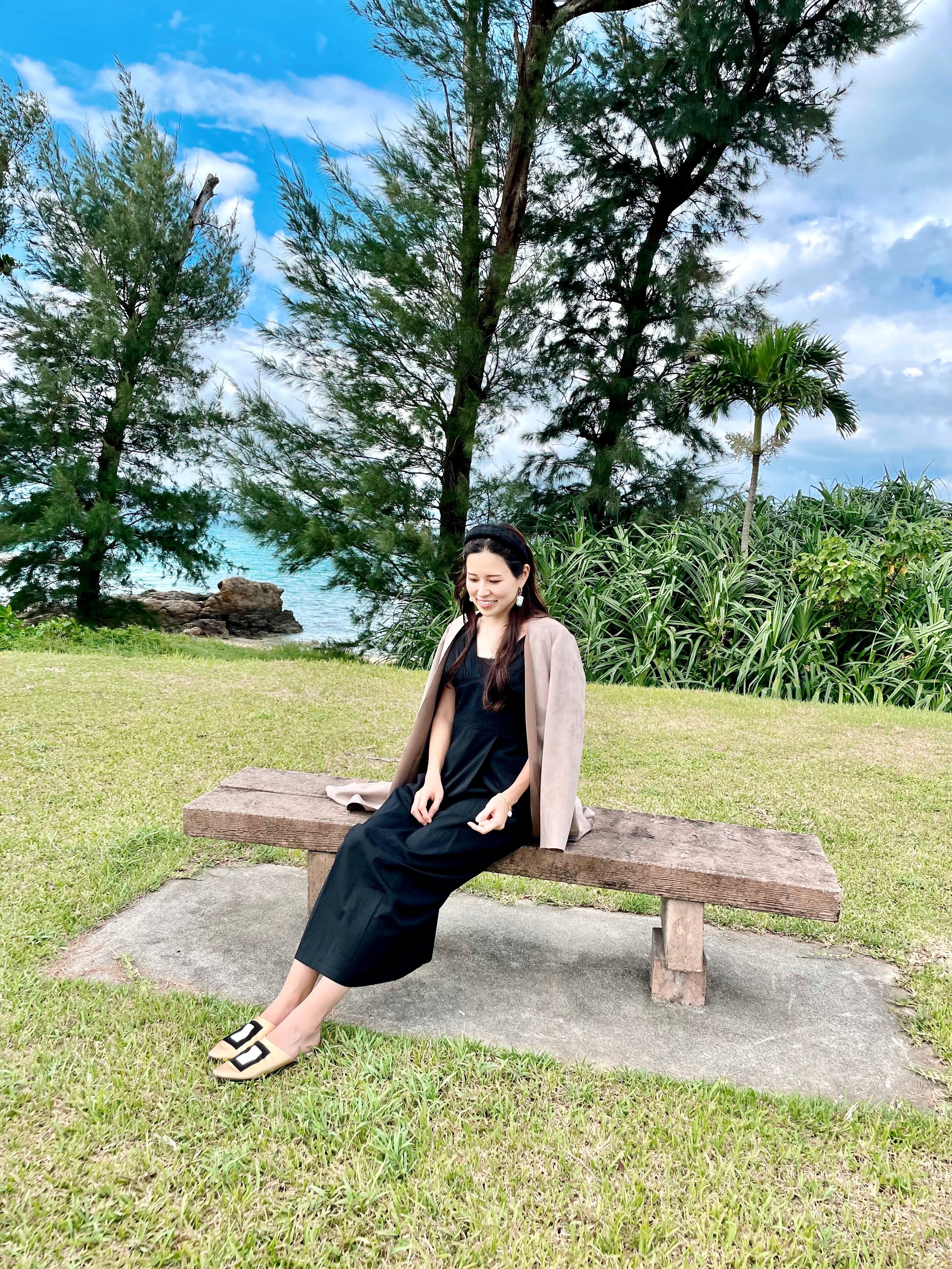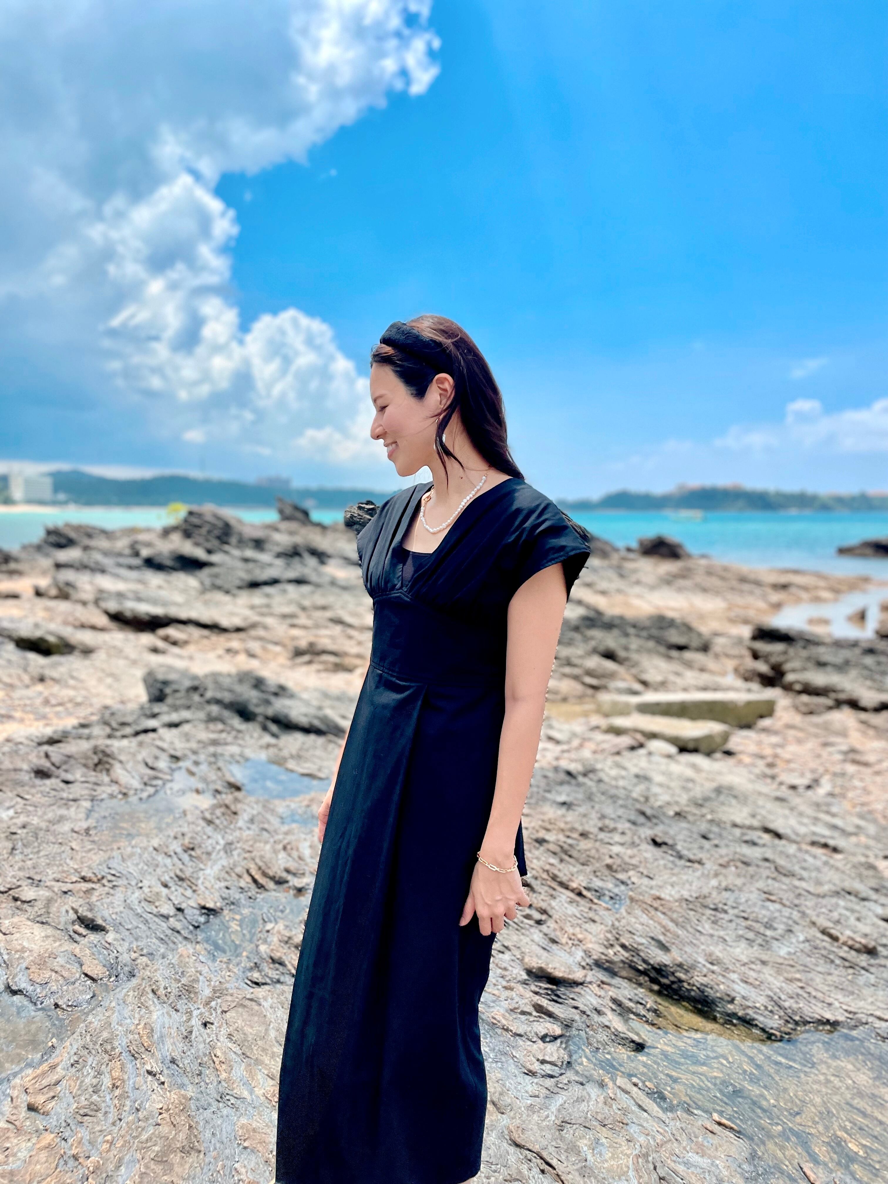 幅広のウエスト布もスカートとつながりが出て、脚を長く見せてくれます。