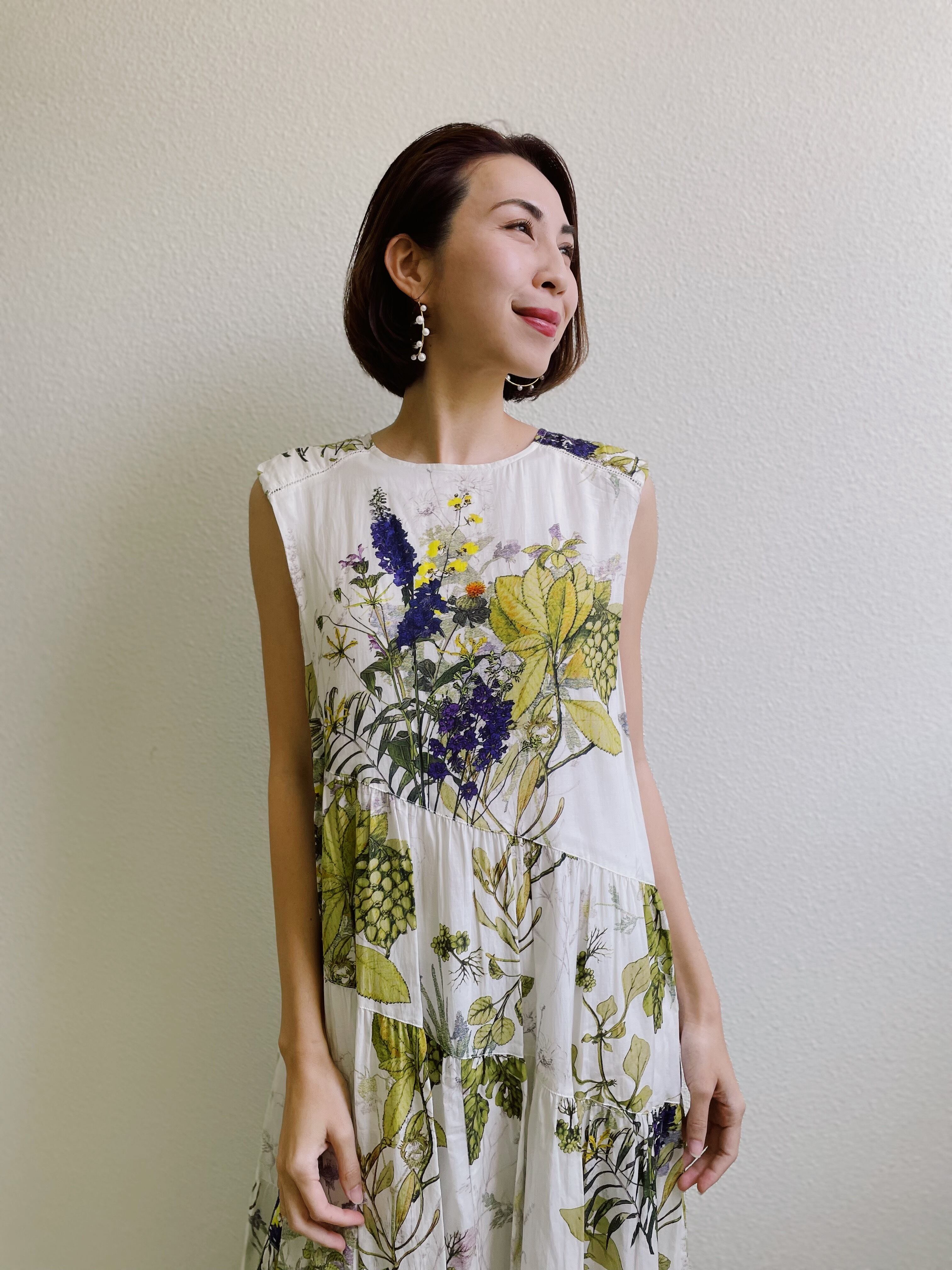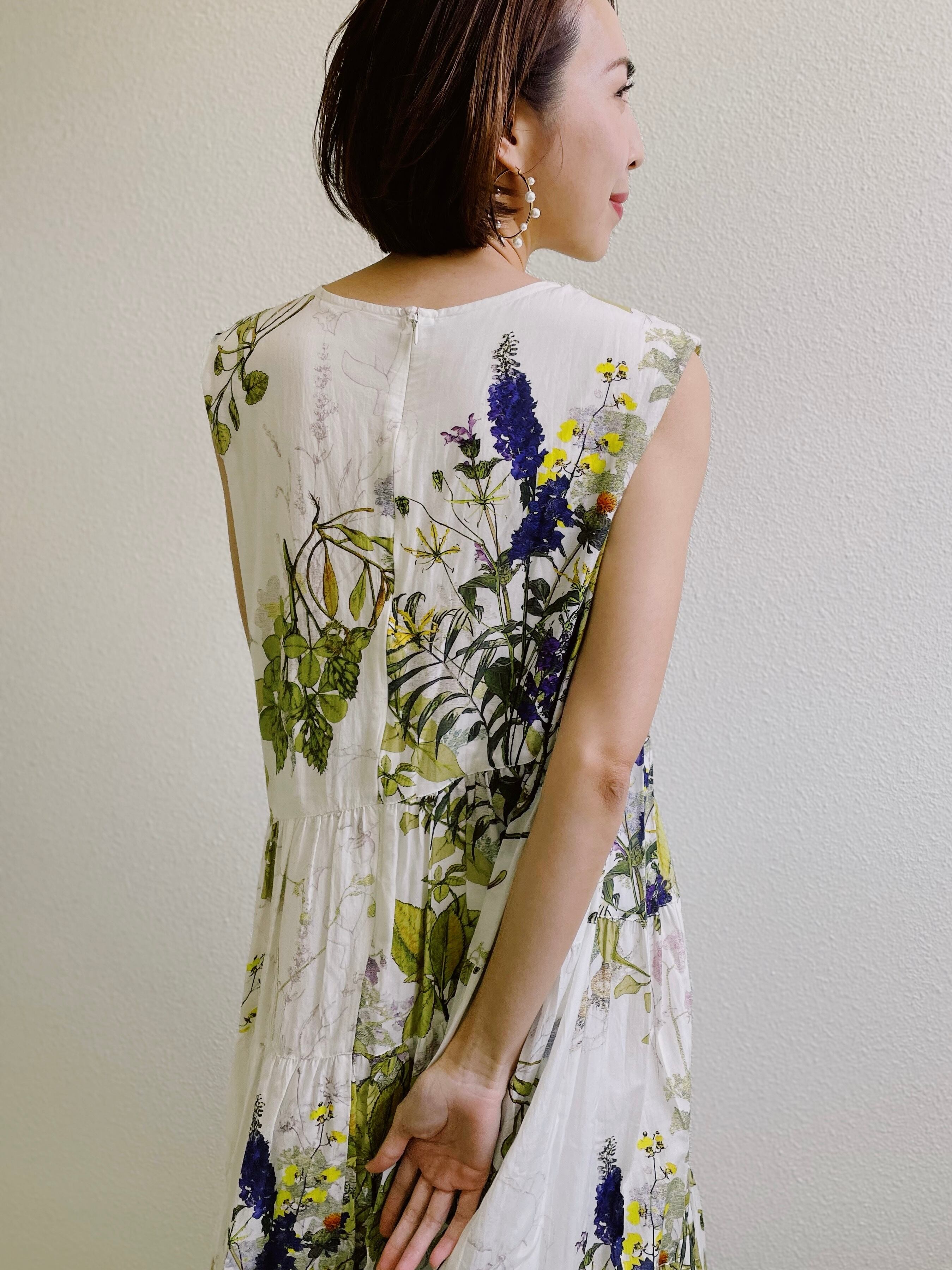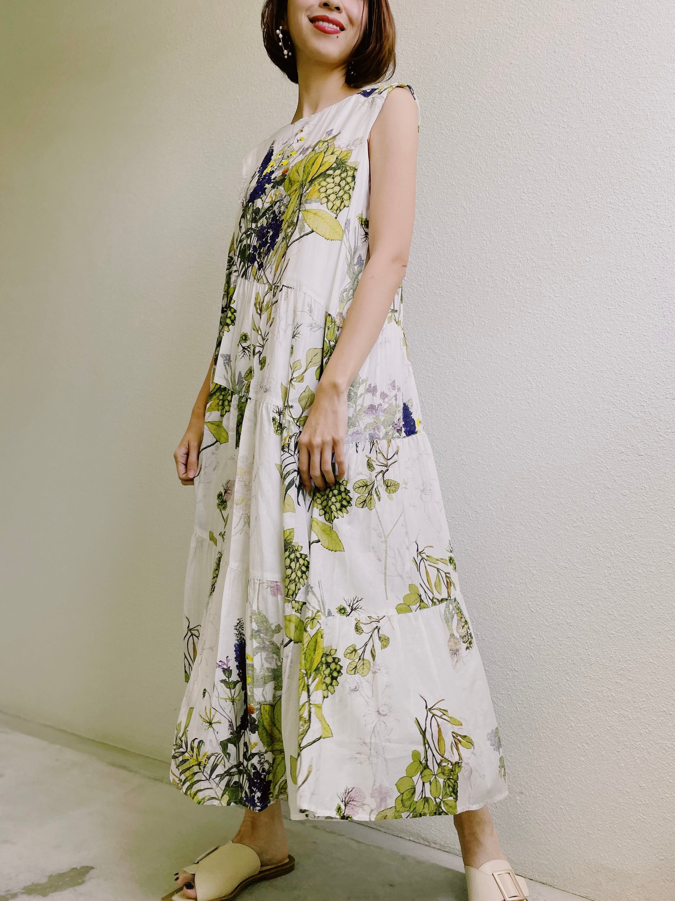 ボタニカルプリントティアードワンピース