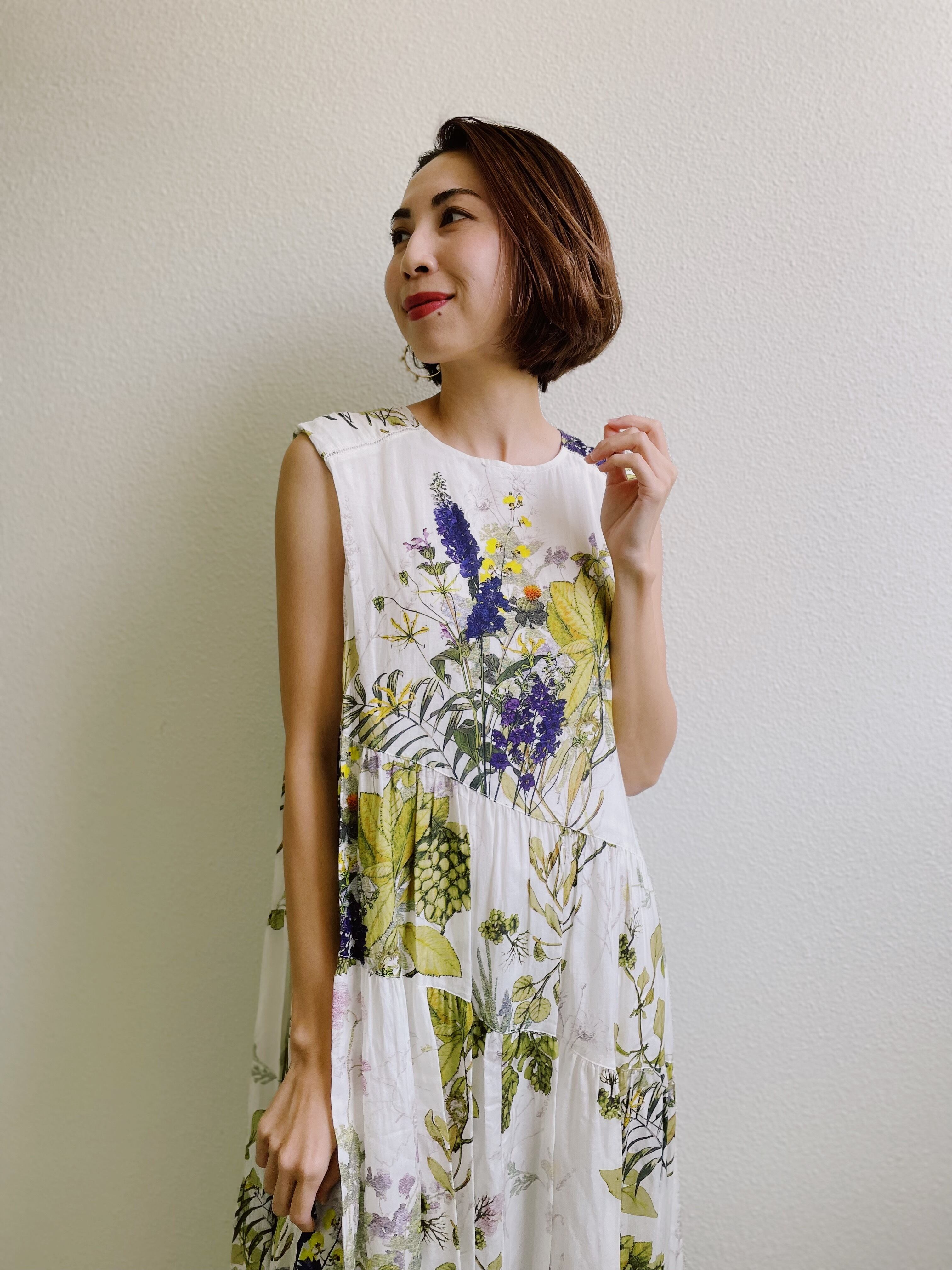 この夏イチ推しのボタニカル柄。花の影まで再現されているこだわり抜いたワンピースです。