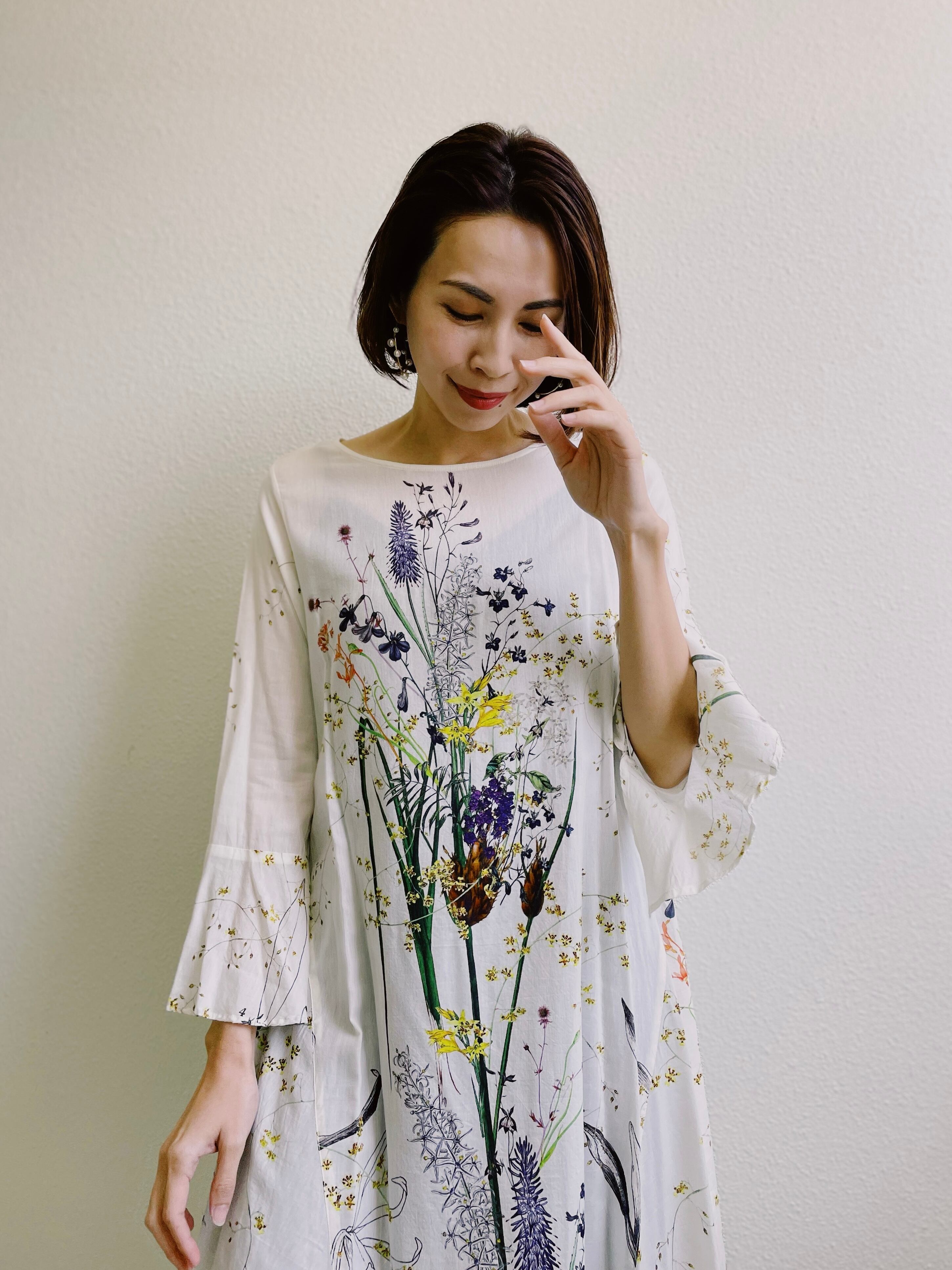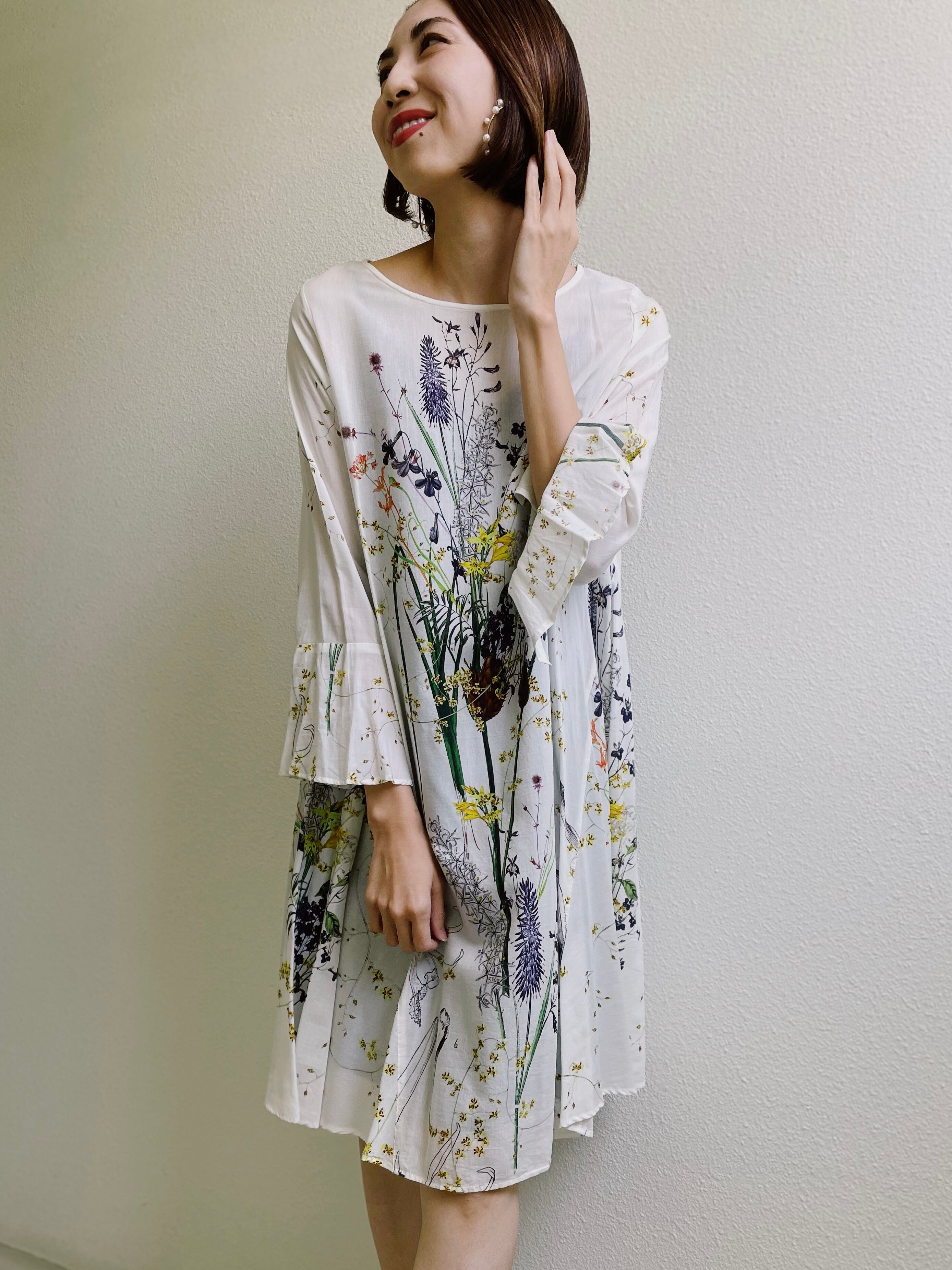 オリジナルのボタニカルプリントが清涼感を漂わせる、存在感抜群のチュニック。