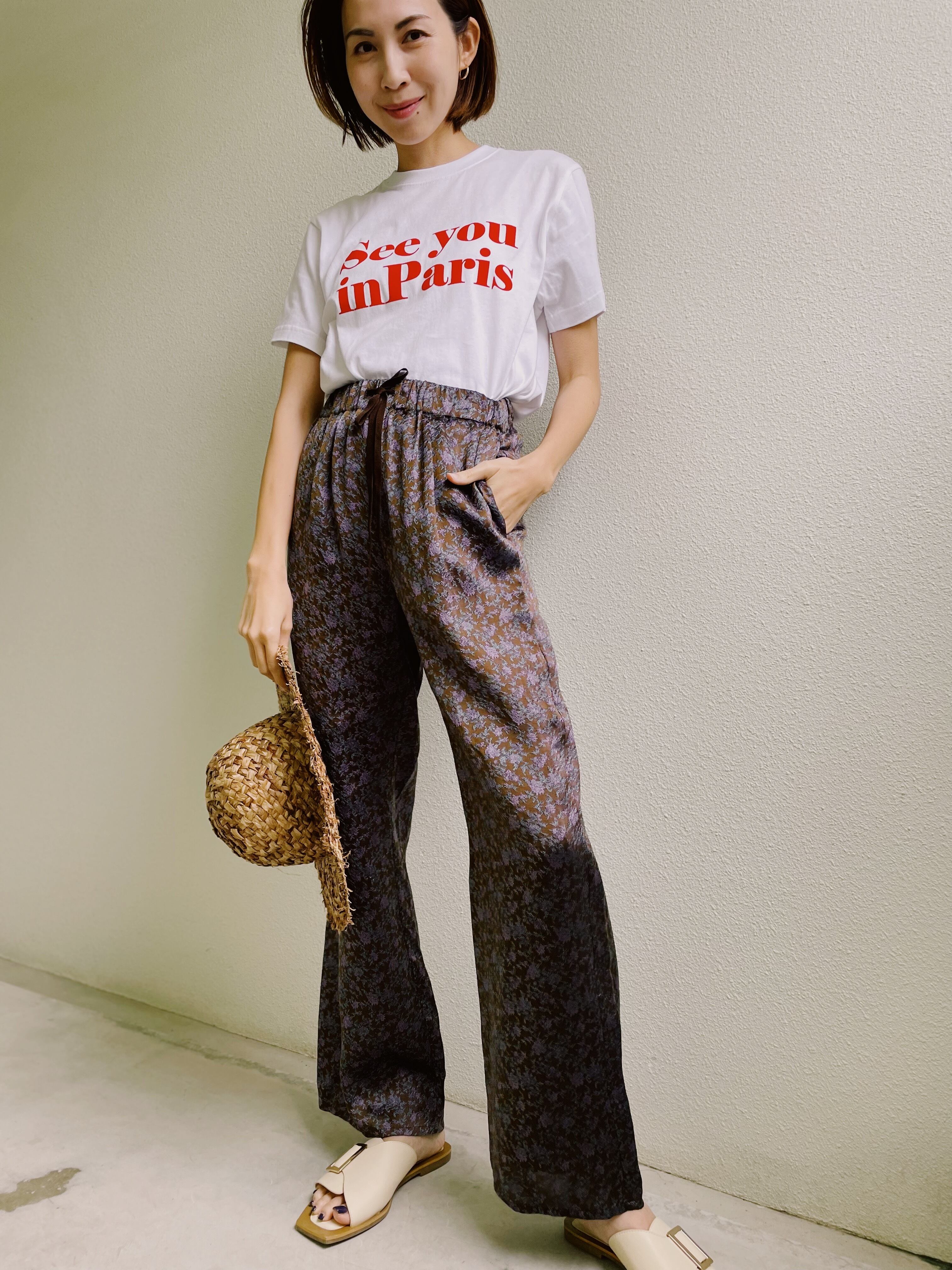 素材のインパクトを惹きたてた、シンプルなデザインのイージーパンツ。