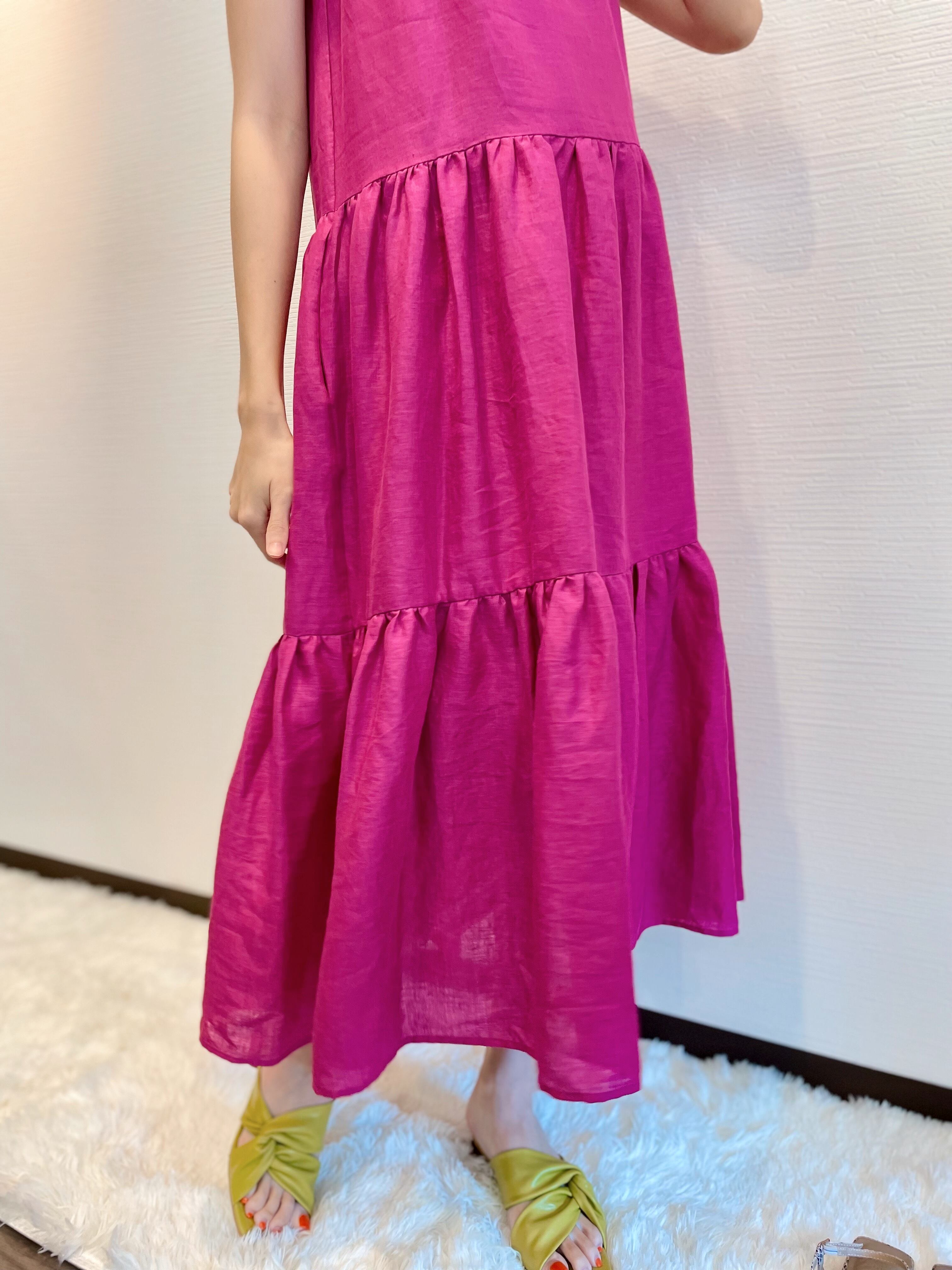 ティアードリネンワンピース / ピンク