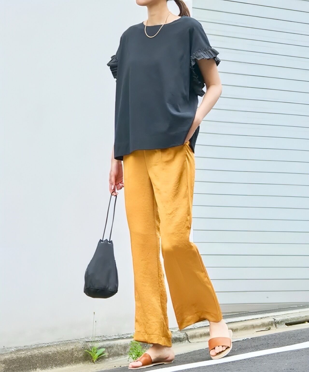 今季も必須!上品な光沢が絶妙な大人のサテンイージーパンツ