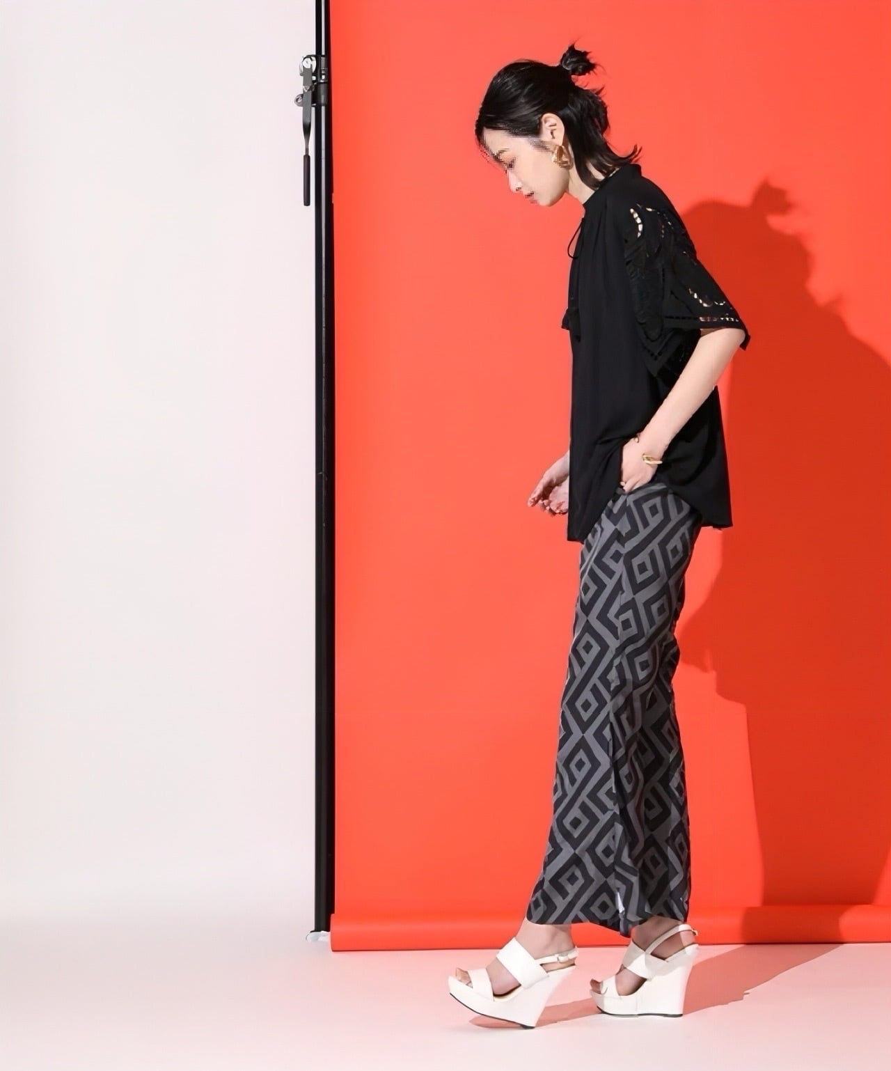 首元に着けたタッセルがトレンド性を感じさせてくれます。
