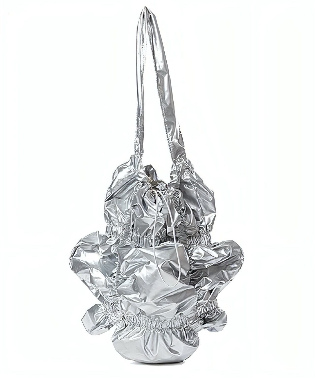 クシュクシュしたシャーリングデザインのショルダーバッグ。