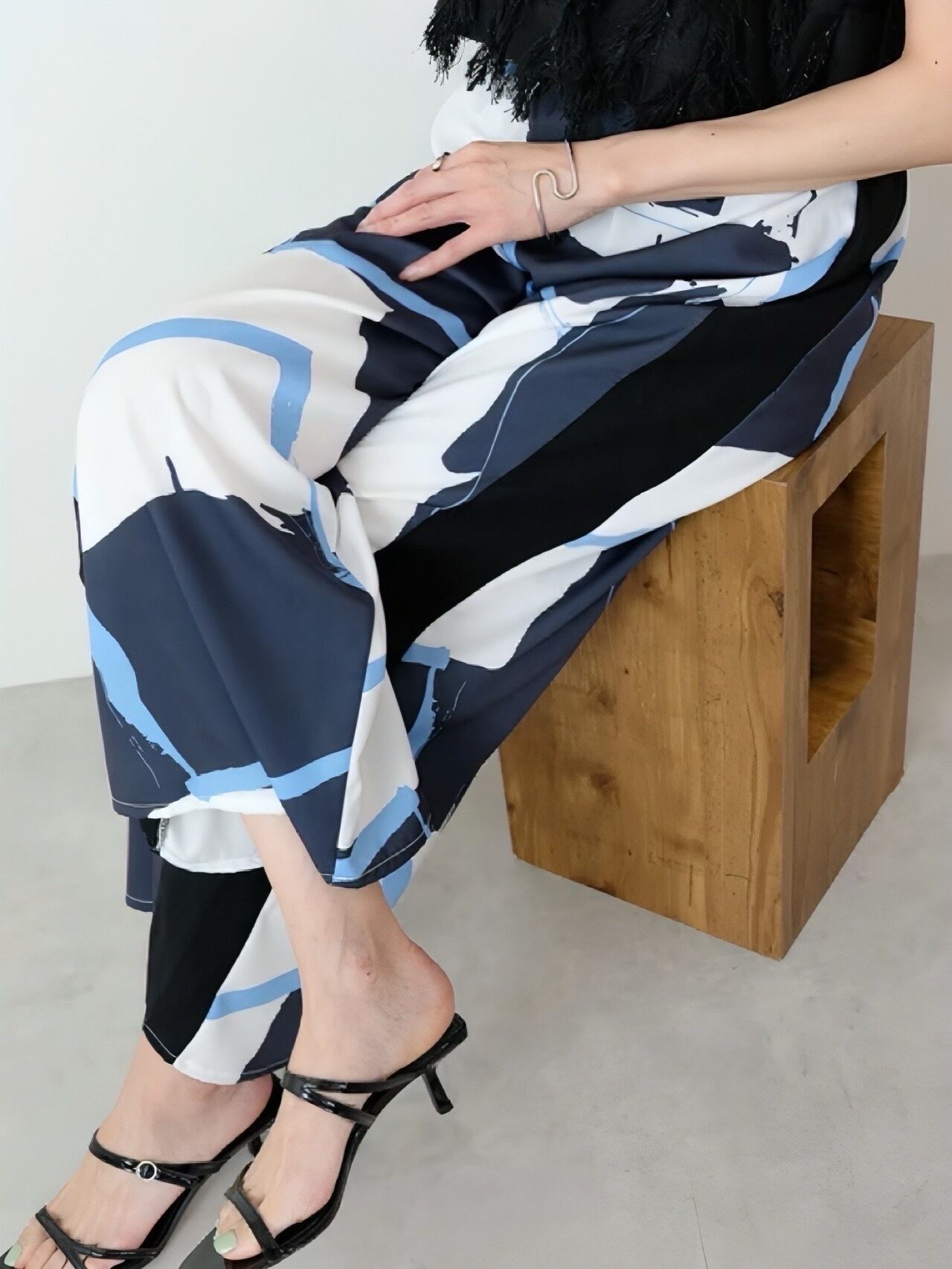 サイドラインデザインでスポーティ要素もあり、ワイドパンツでモードにキマります。