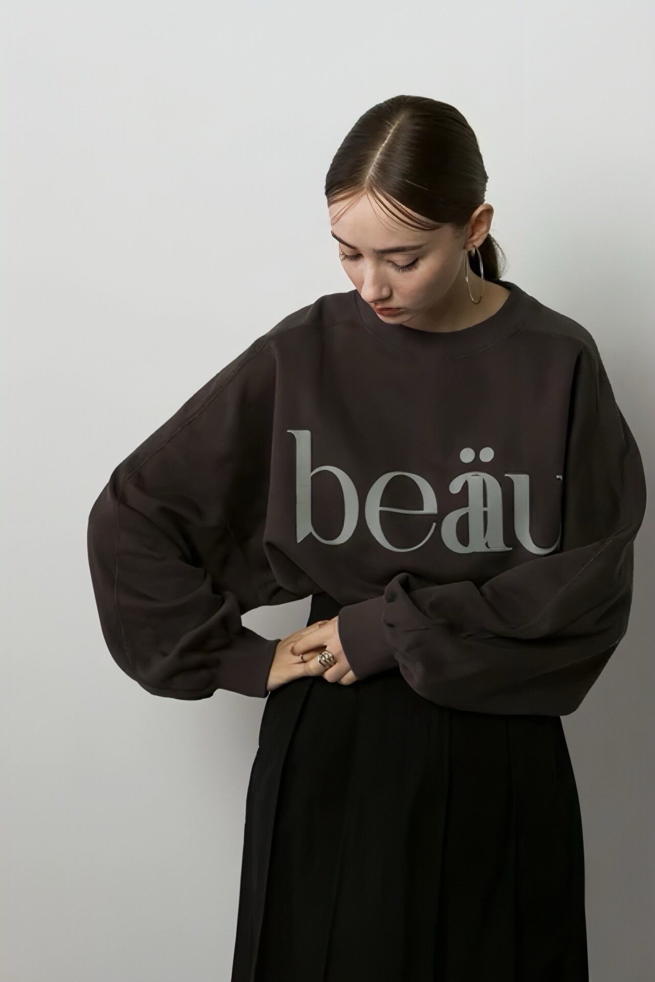 トレンドのビッグシルエット+ドロップショルダーで今っぽい抜け感を演出します。