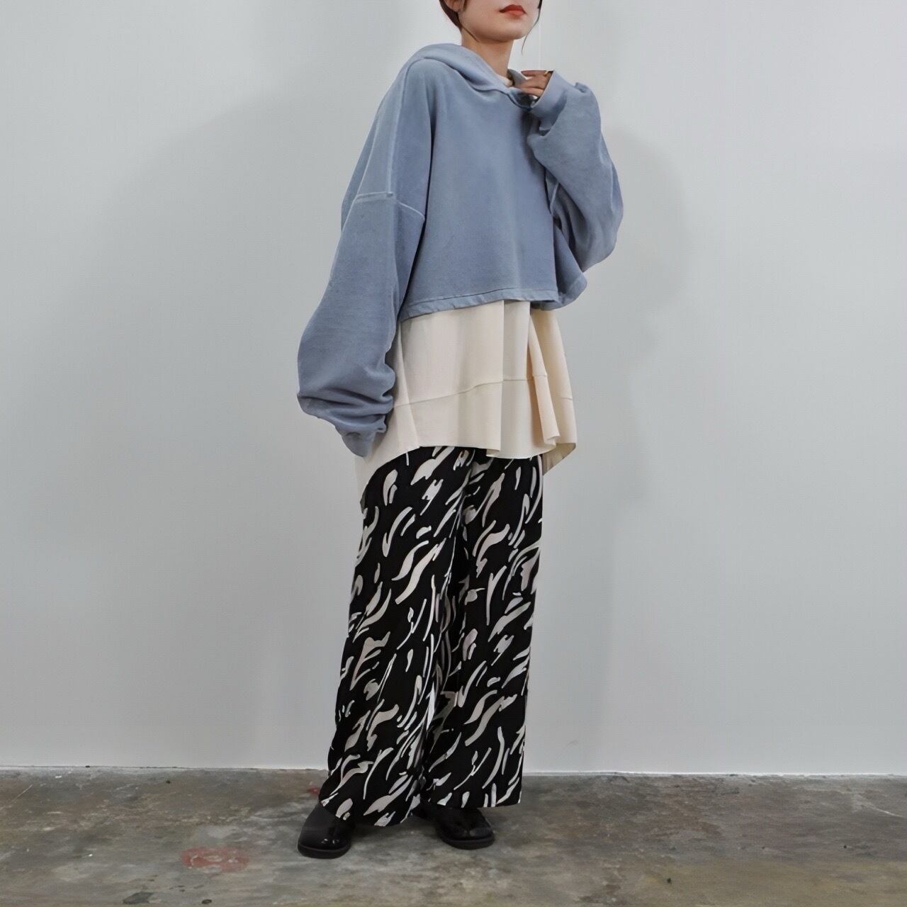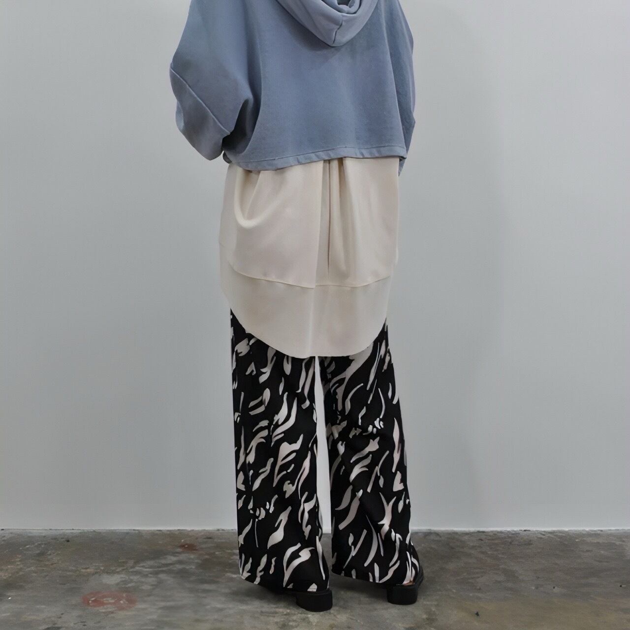 落ち着いた色味とニュアンス柄が主役になるパンツ。
