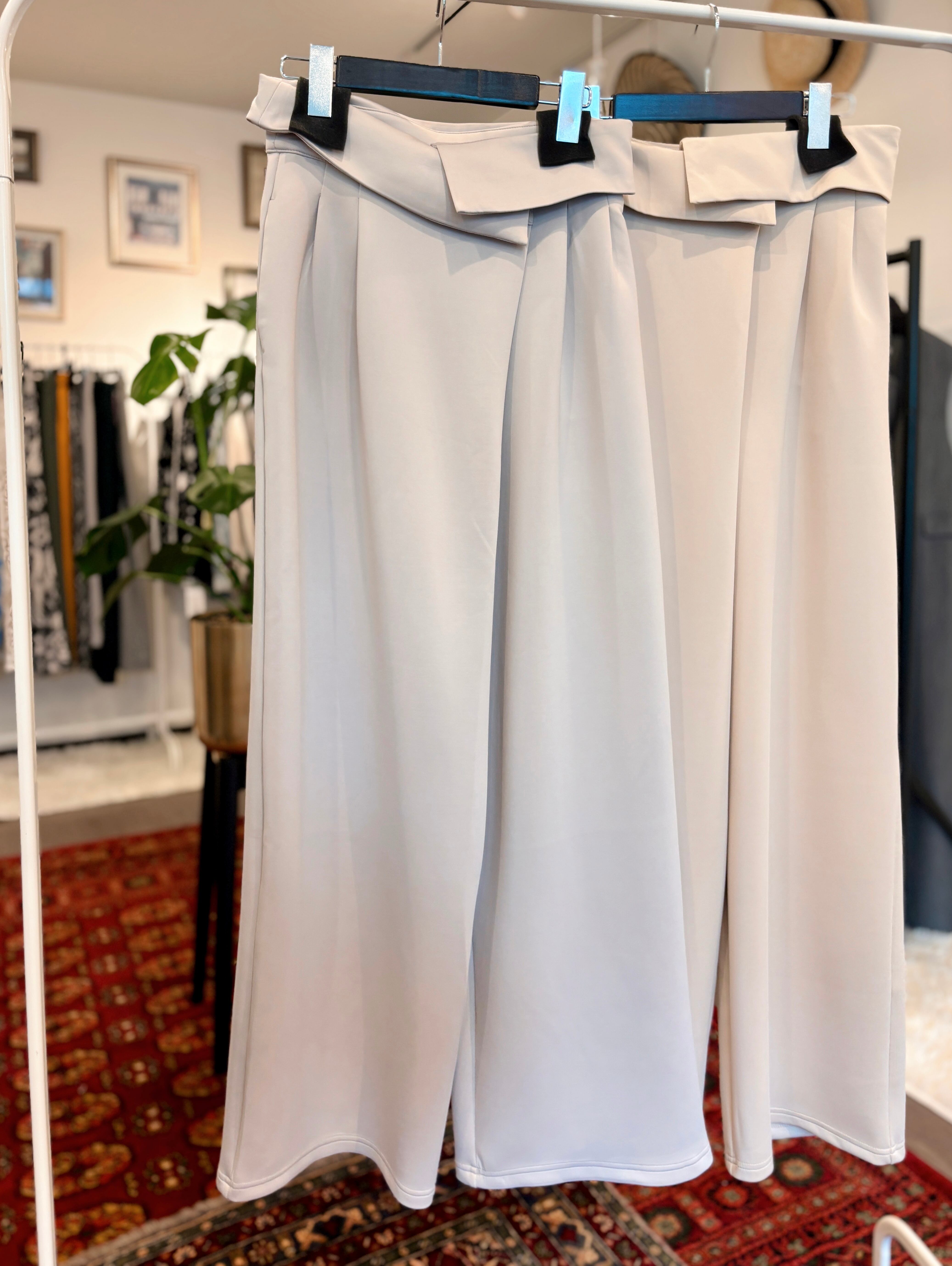 ハイストレッチダンボールニット・ウエスト折返しワイドパンツ